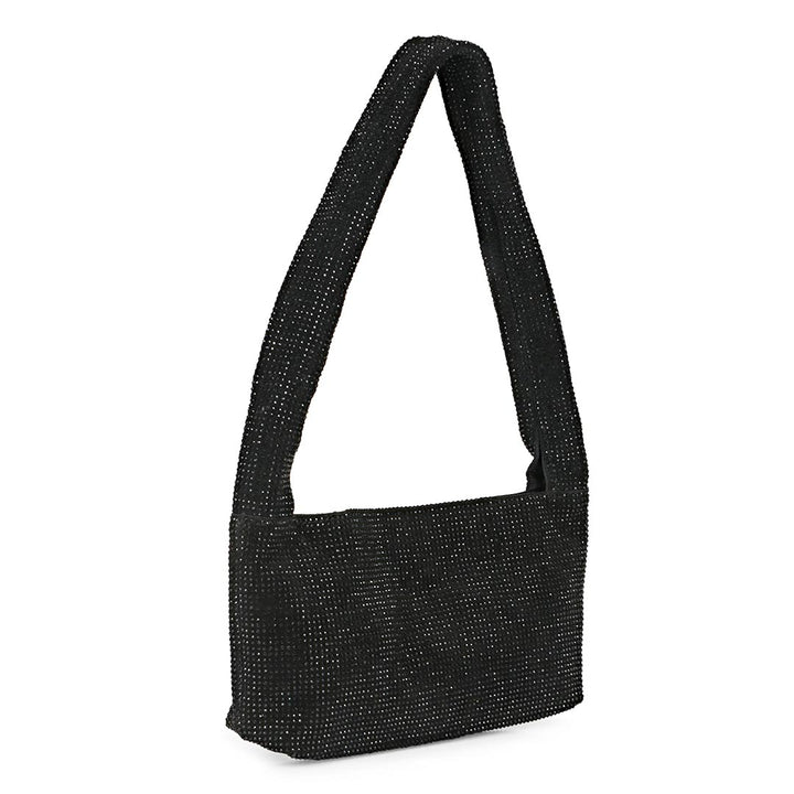 Show your unique style with this exquisite Alma Crystal Embellished Black Leather Mini Handbags. It features luxurious black crystal embellished leather upper and cotton lining with a magnetic button closure.