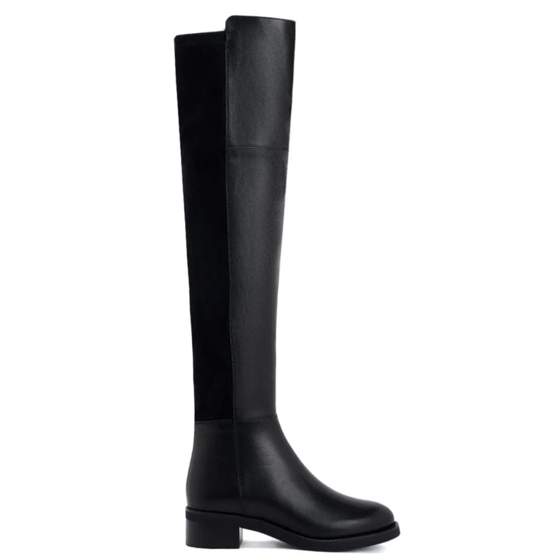 These black boots are crafted from 100% genuine leather with back stretch suede, raised front, fleece and leather lining for a luxurious feel, padded leather footbed provides lasting comfort. Featuring back stretch suede for the perfect fit around the calf, an inside zip closure to ensure comfortably slip them on and off.