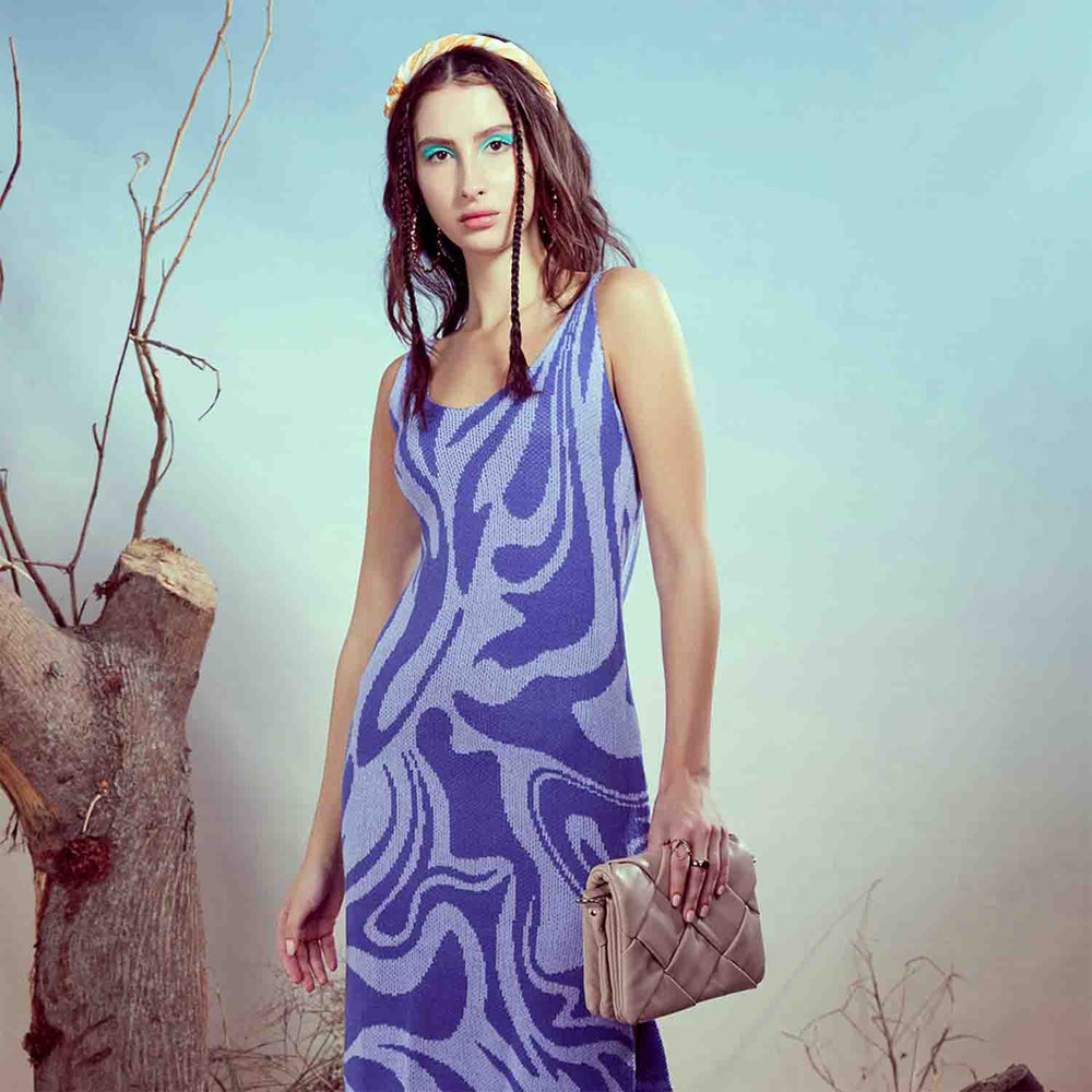 Alma Crystal Embellished Blue Leather Mini Handbags