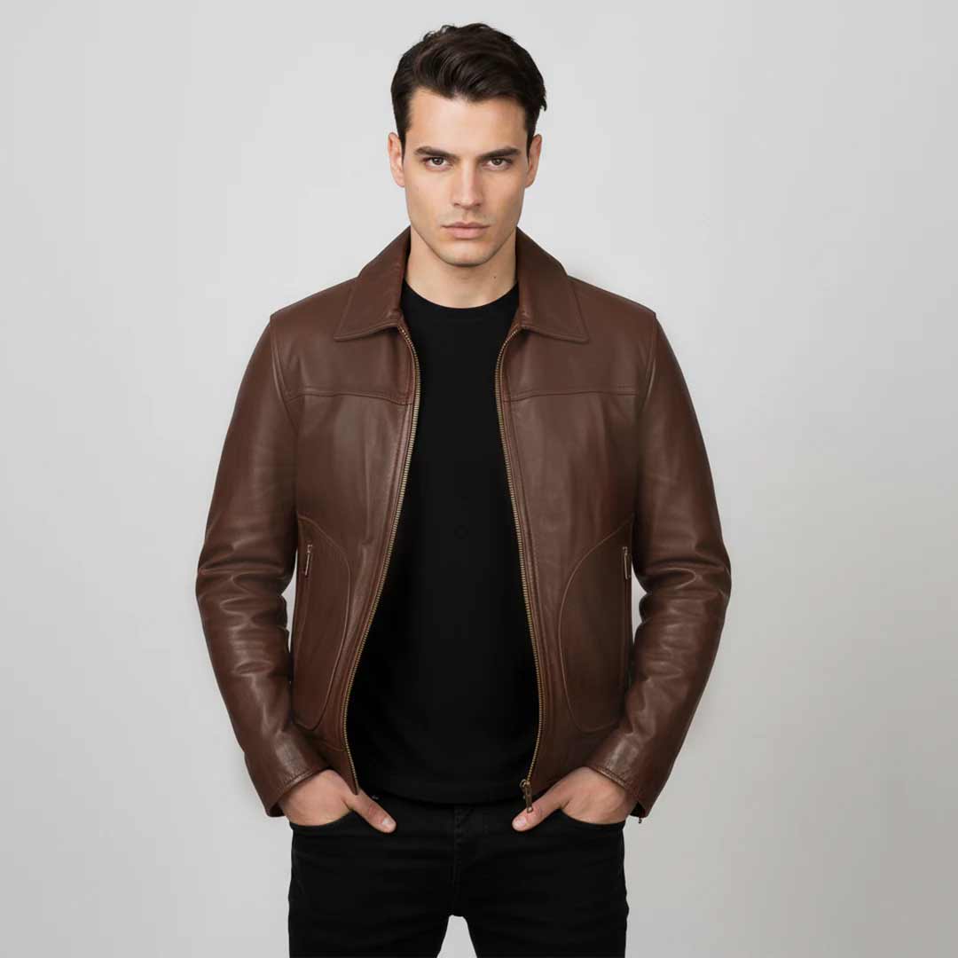 Saint Arduin Choco Brown Washed Leather Men's Bomber Jackets