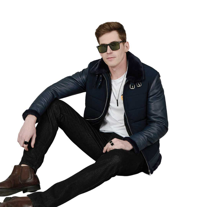 This premium Blue Denis Leather Jacket is designed for men with a luxuriously crafted genuine Leather, Cotton Fabric and Taffeta Sleeve Lining, offering a Zipper closure, spread collar, and ribbed cuffs and waist for protection against winter weather. Handcrafted with attention to detail, this jacket is a must-have for the winter season.