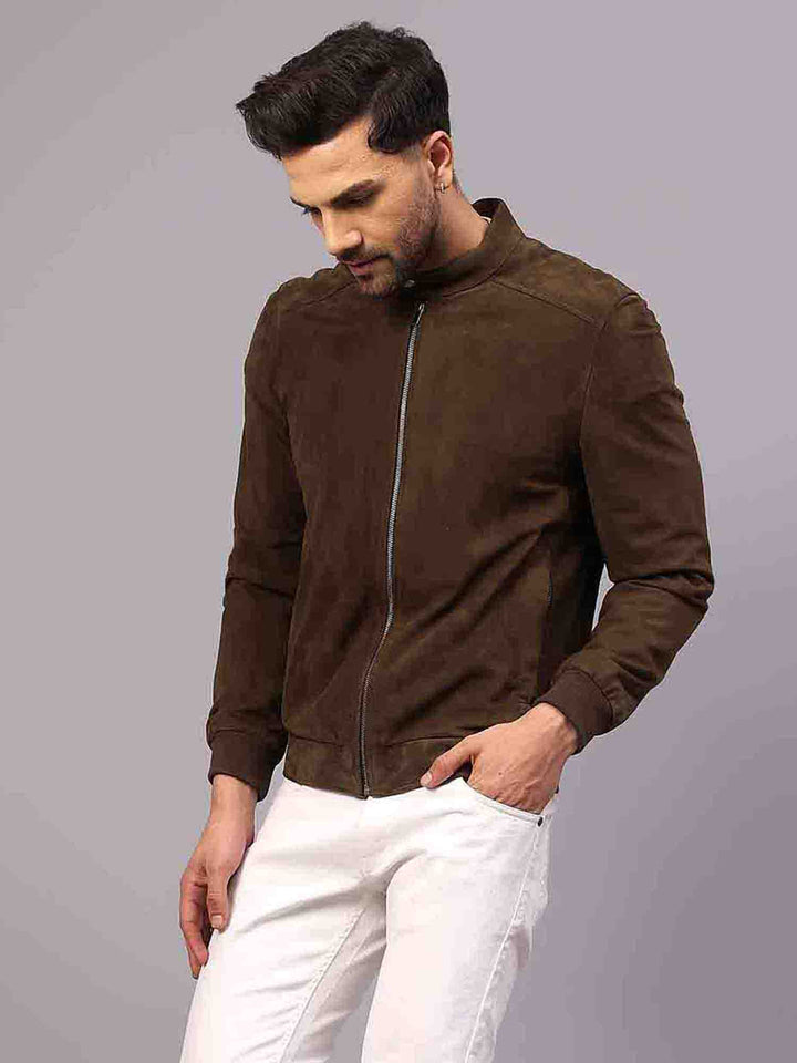 Saint Freya Olive Suede Leather Men's Bomber Style Jackets