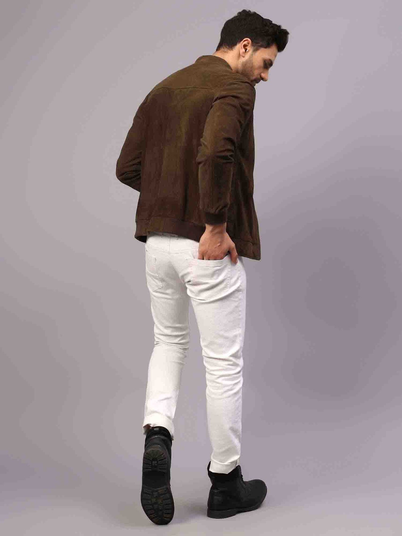 Freya olive leather men bomber style jackets are crafted from premium suede leather upper with fine taffeta and cotton lining. The refined design features a snap collar button and zipper closure for a stylish look, as well as ribbed waist and cuffs for a comfortable fit. The luxurious piece also includes two outside slip pockets and one inside pocket. Reach a new level of style and quality with these timeless jackets.