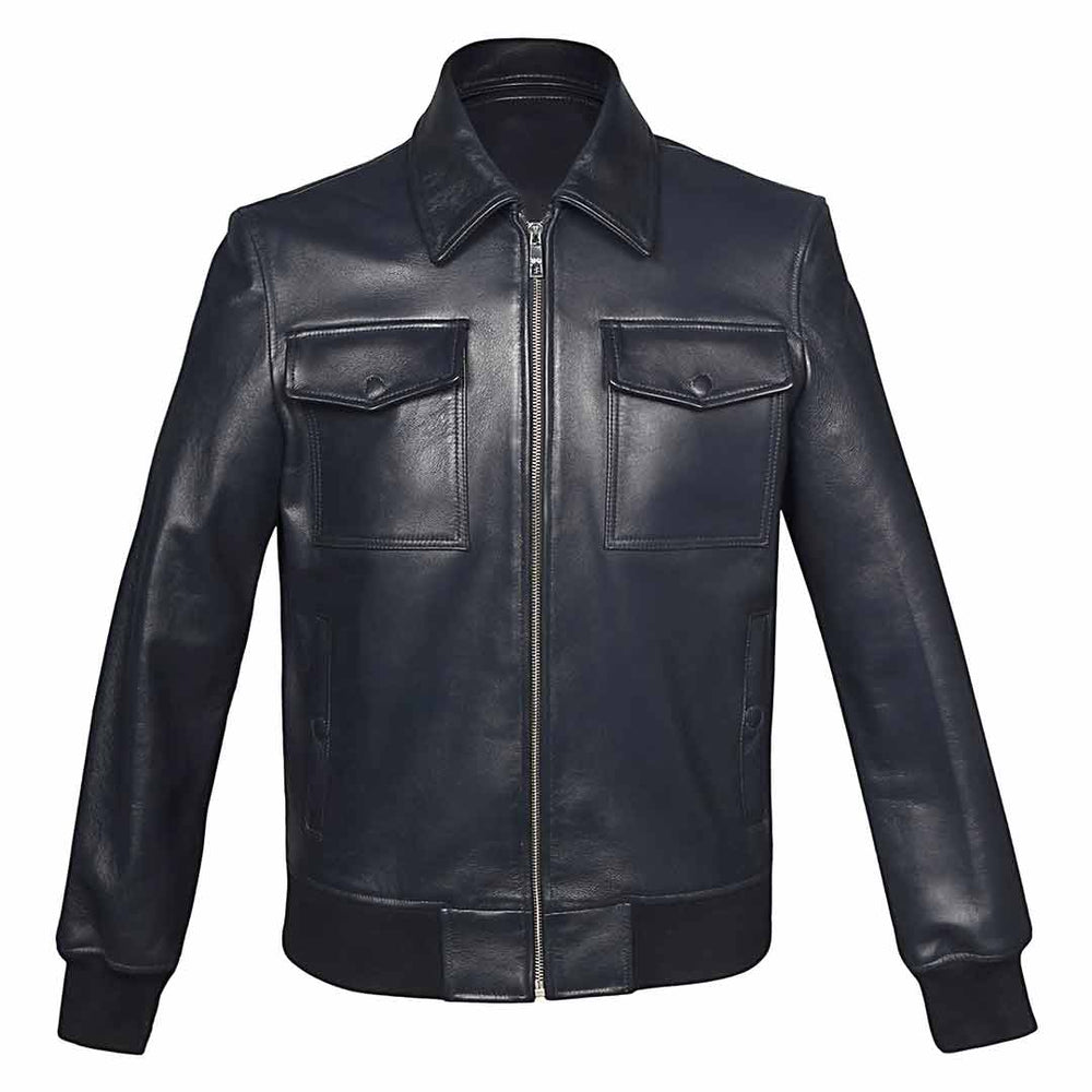 Saint Simon Blue Leather Men's Jacket With Collars