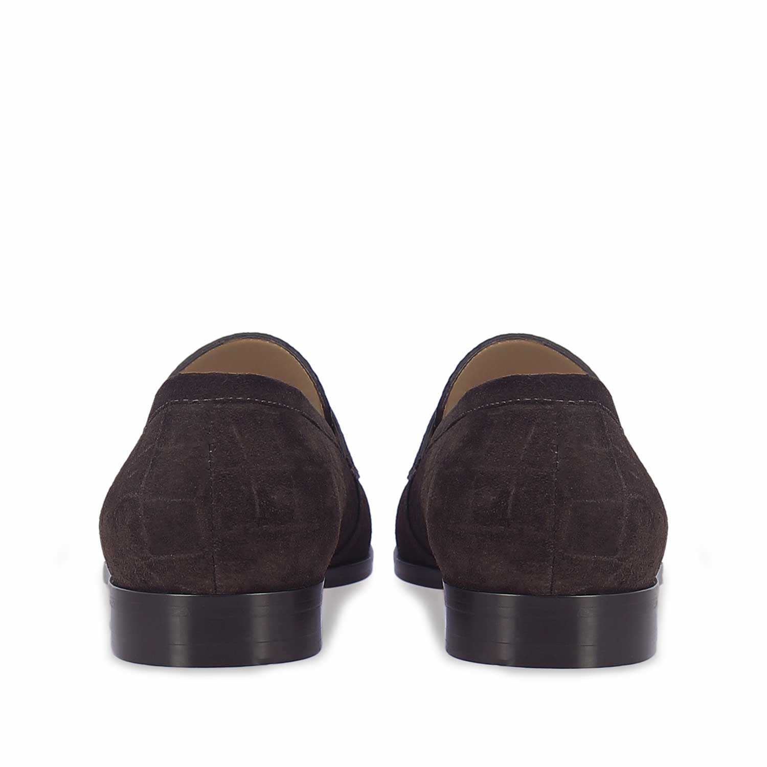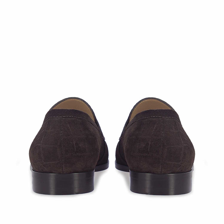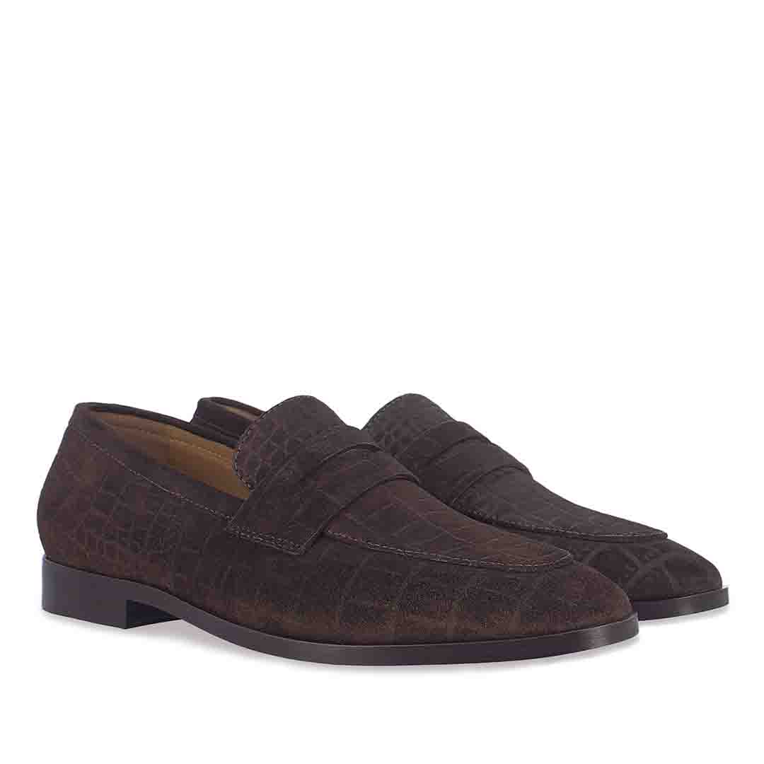 Saint Alessandro Brown Suede Croco Print Leather Loafers