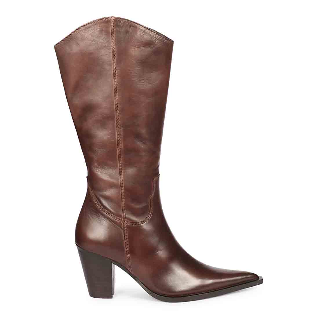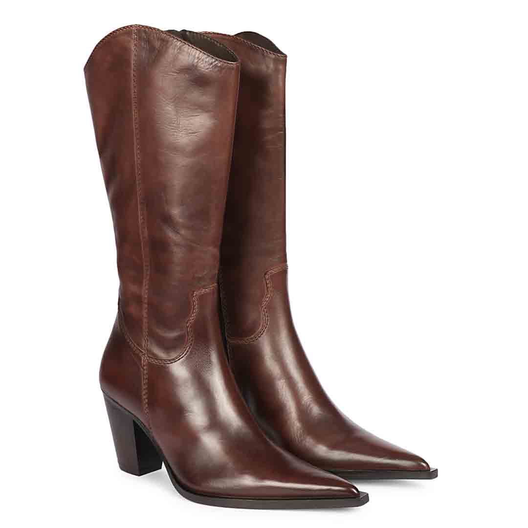 Saint Emilia Brown Stretch Napa Kitten Heel Long Boots