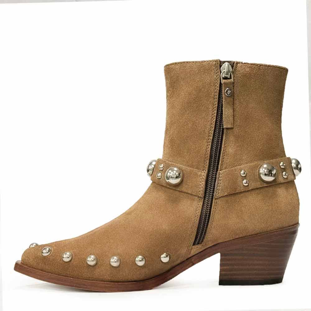 Saint Ryleigh Silver Studded Black Suede Leather Boots
