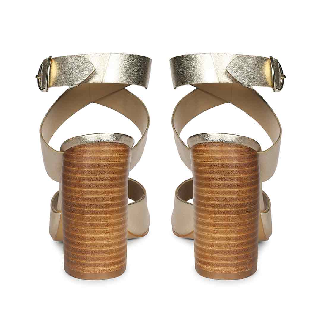 This Maelle metallic gold heel catches the light from every angle, while the wide front strap and wraparound ankle band create a strong, flattering shape. The stacked block heel adds height with a grounded feel, making it your go-to for parties, weddings, and late-night plans.