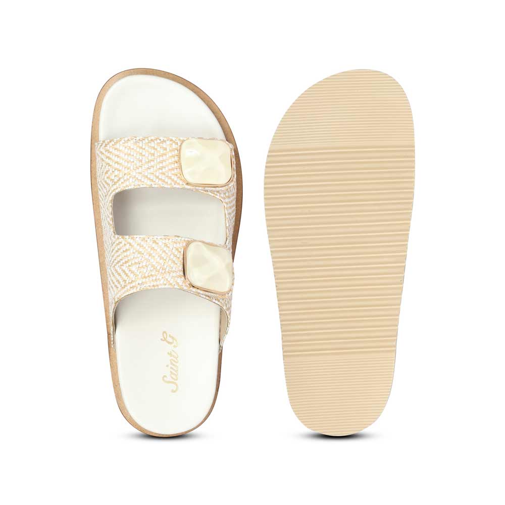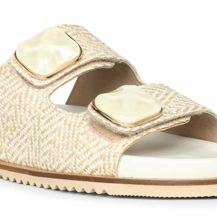 Saint Oren Off White Stone Jeweled Raffia Leather Sandals