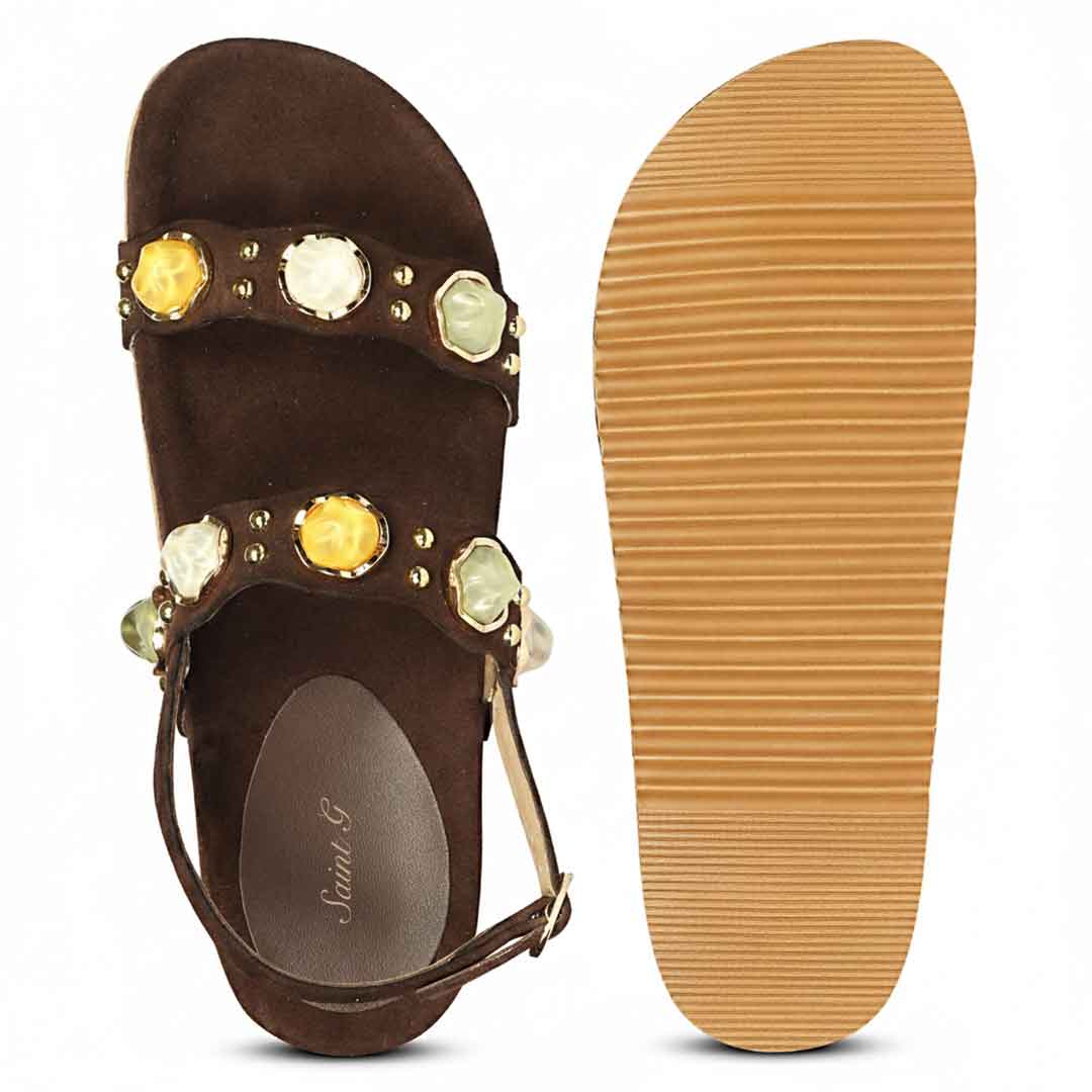 Saint Solira Multi Trim Brown Suede Leather Footbed Sandals