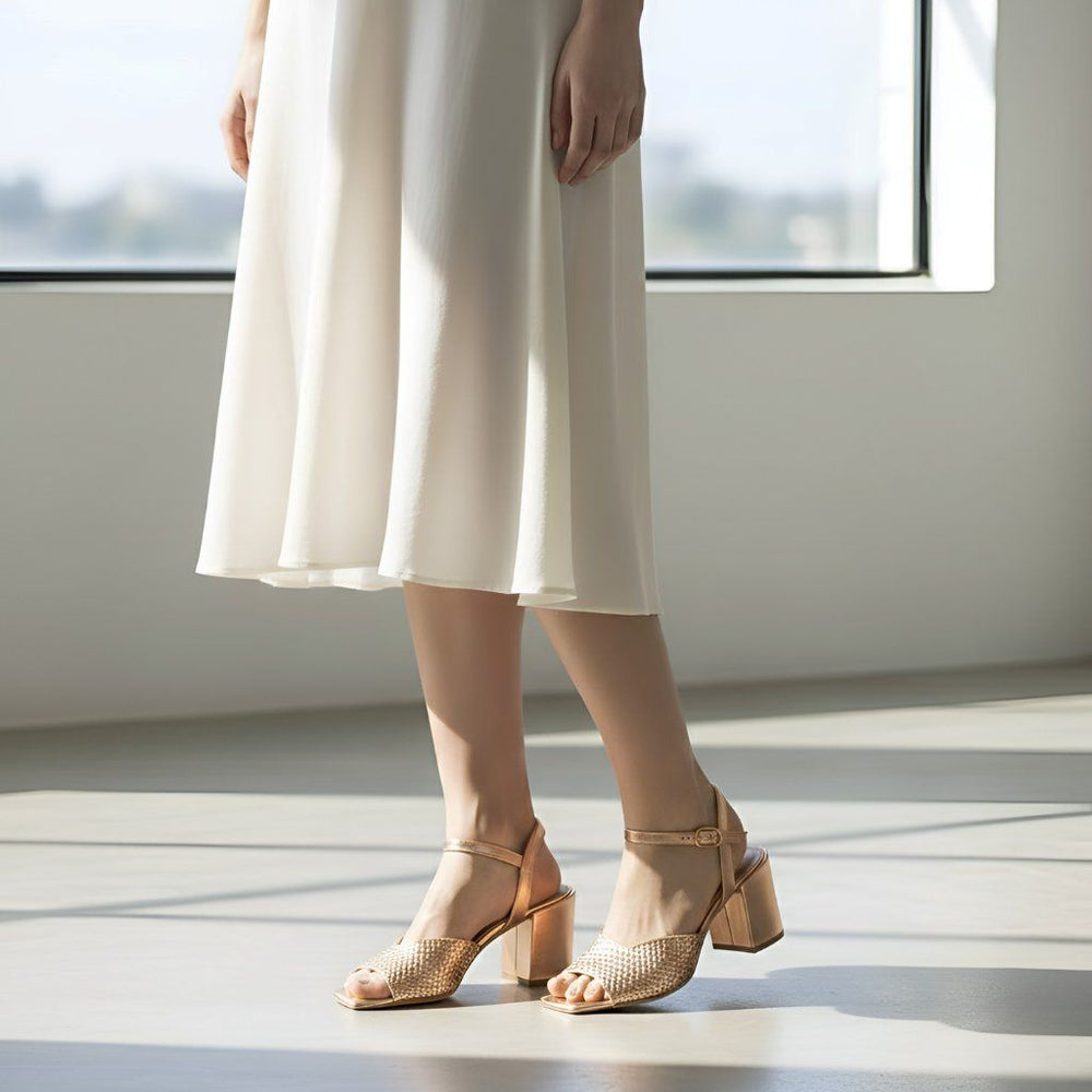 Saint Athena Cipria Metallic Hand Woven Leather Heels
