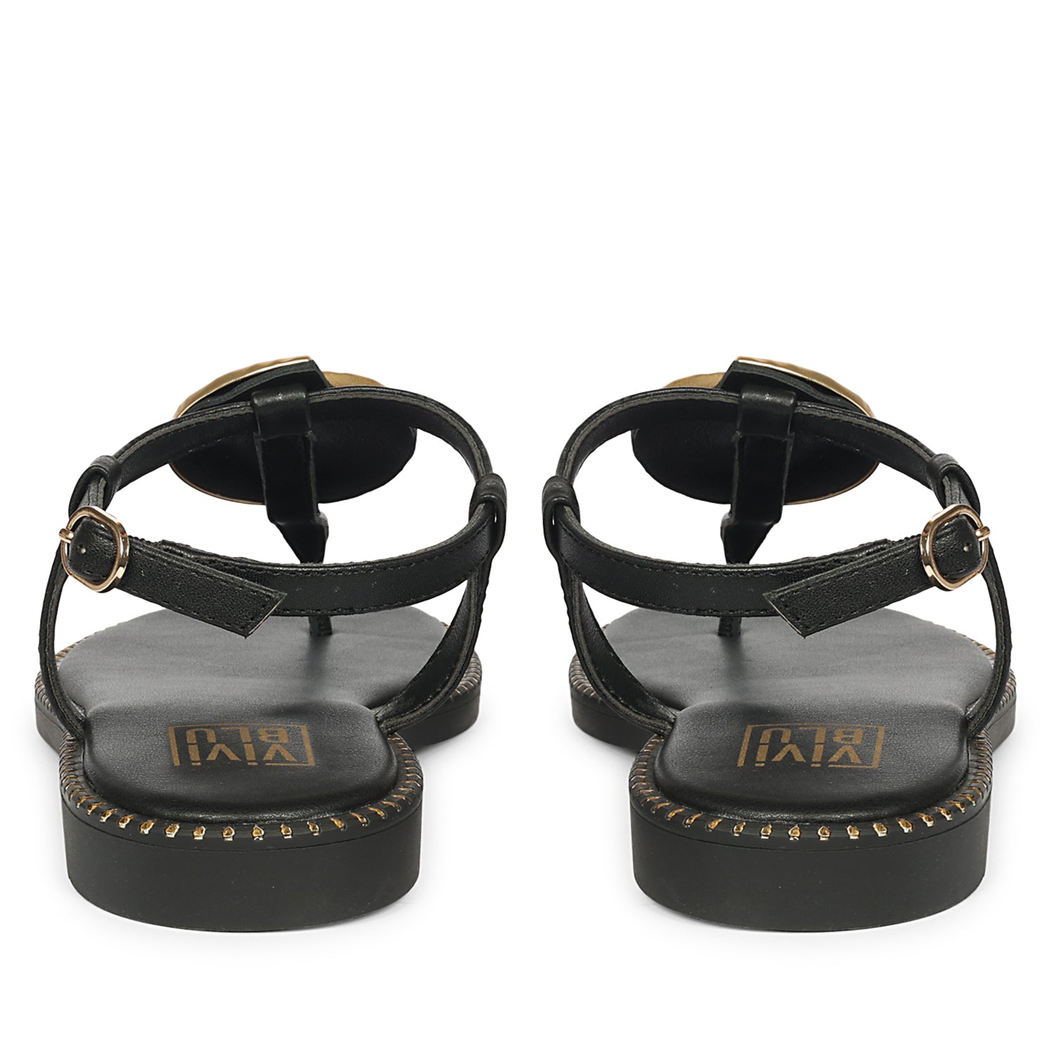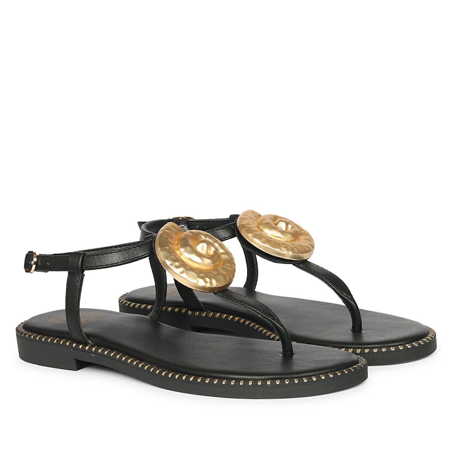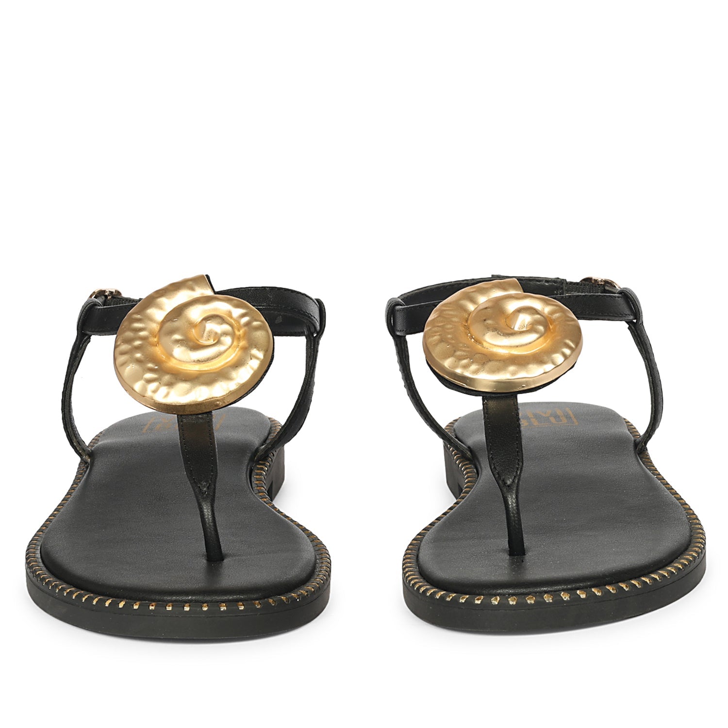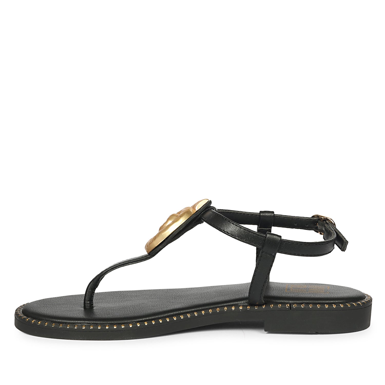 Amalia Black Leather Flat Sandals