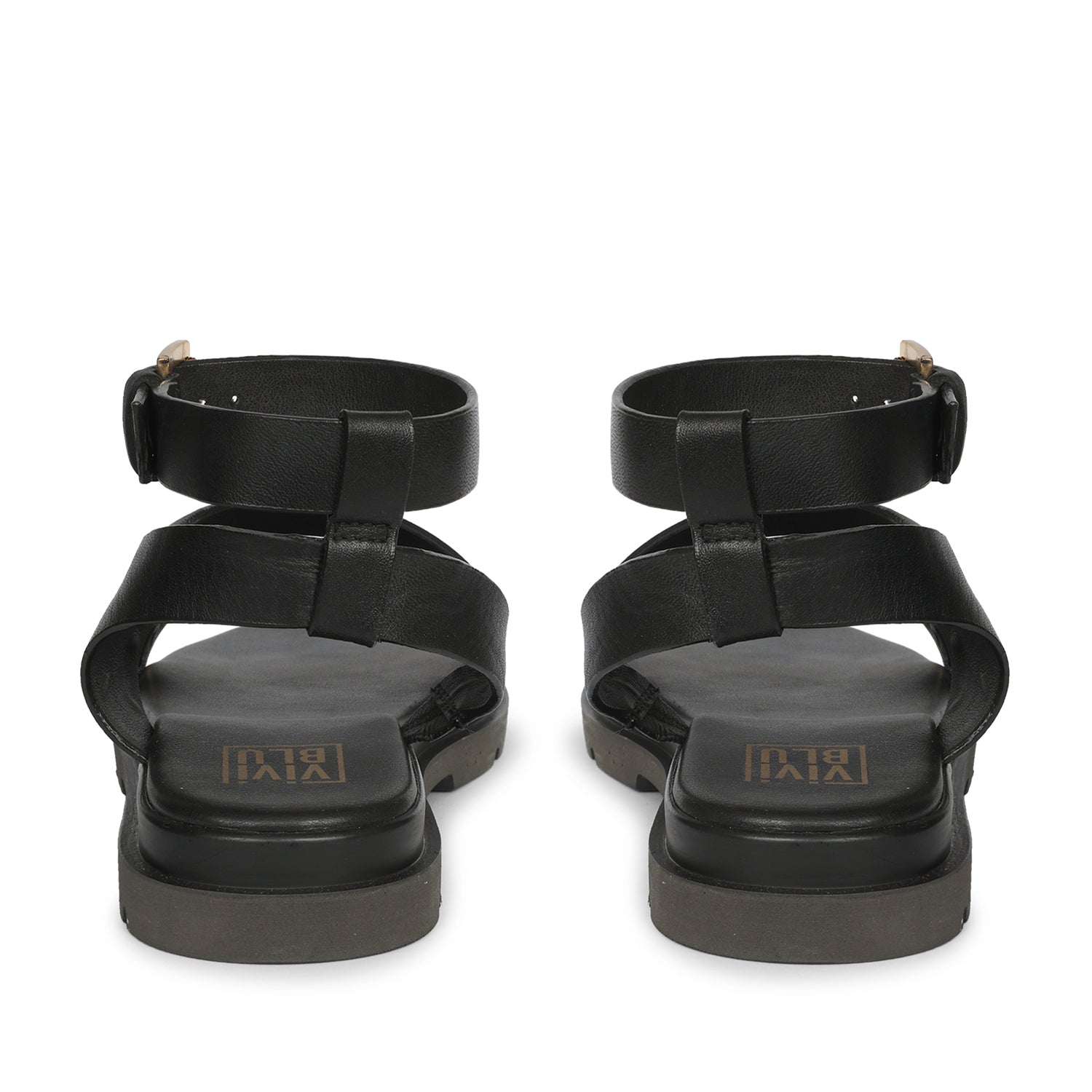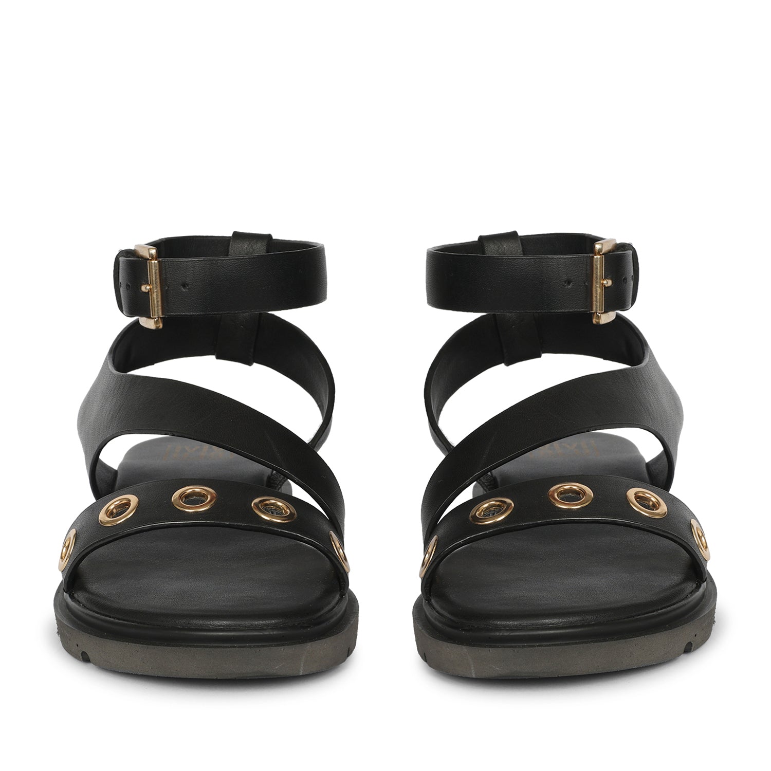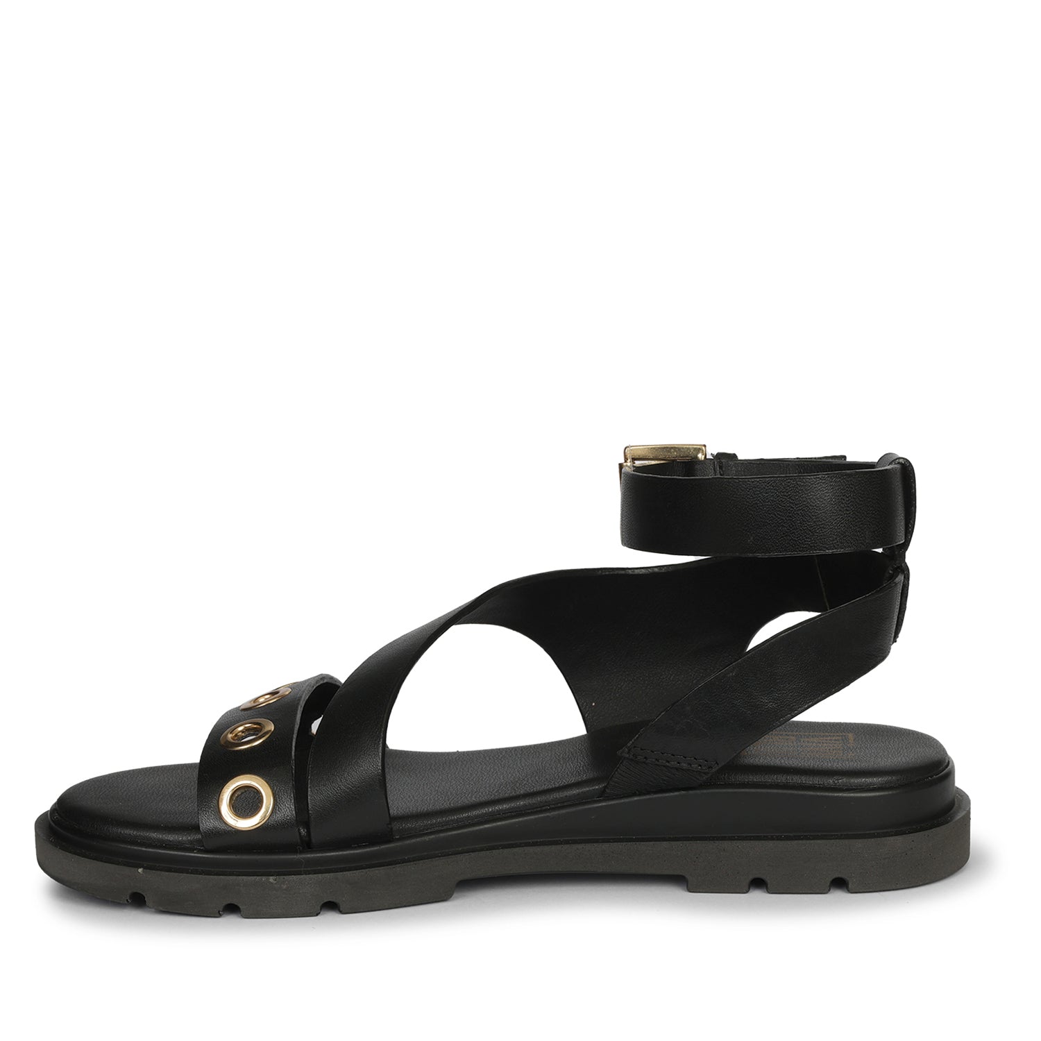 Brinley Black Leather Flat Sandals