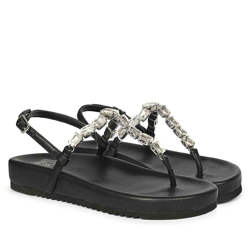 Natalie Black Leather Flat Sandals