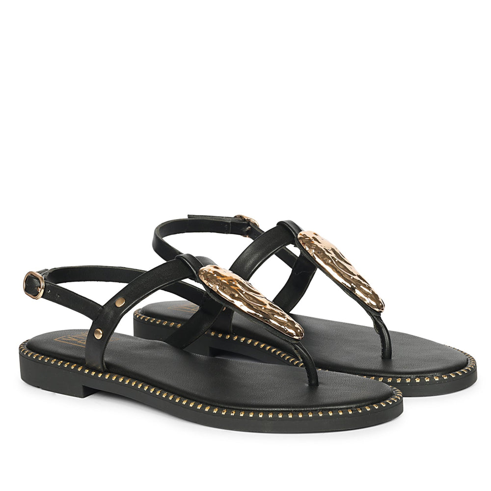 Melanie Black Leather Flat Sandals
