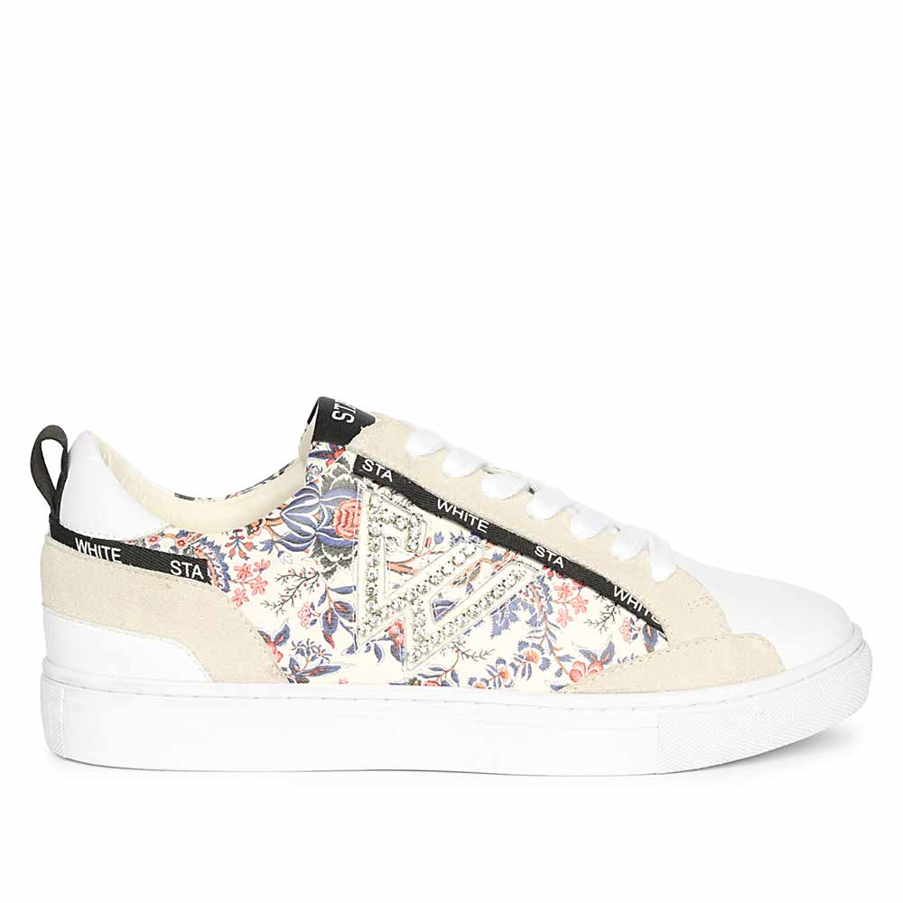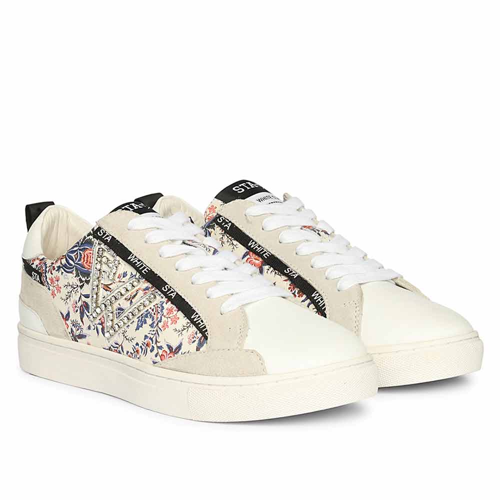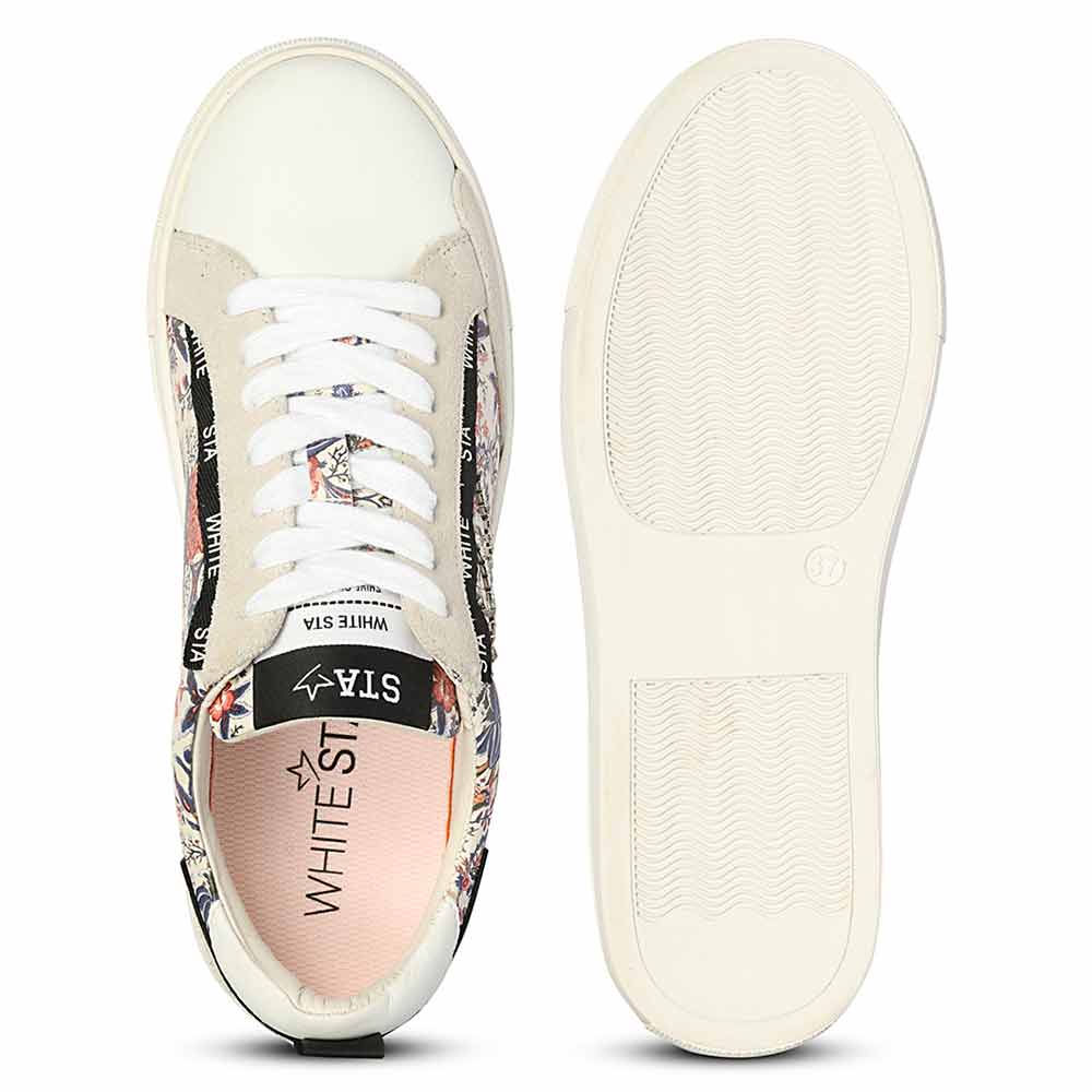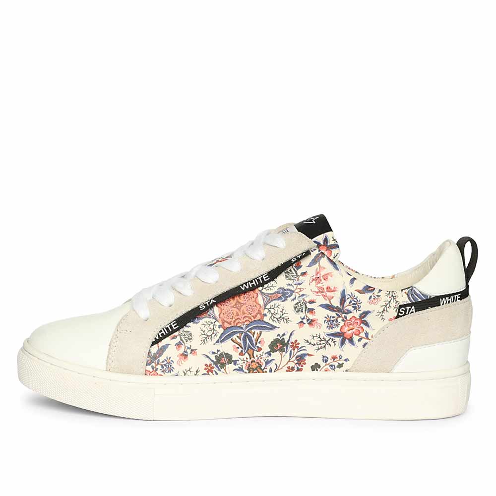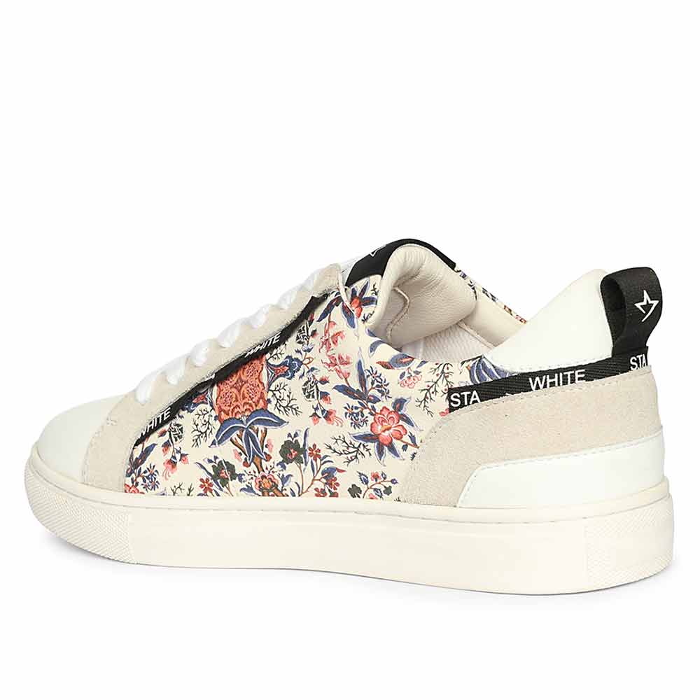 Material: White Flowers Printed Pu, Ivory suede leather, White PU