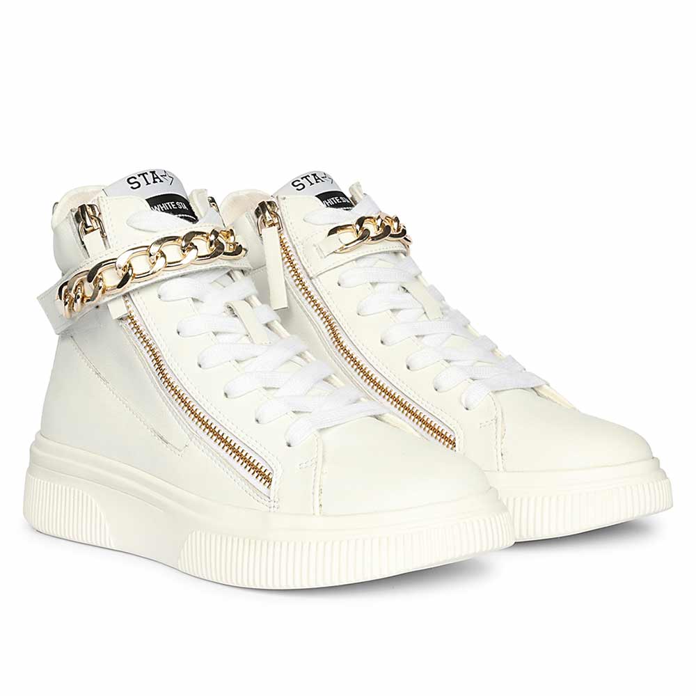 Step into the future with Galaxy White Sneaker, where galactic inspiration meets high-fashion craftsmanship. Designed for those who dare to stand out, these sneakers blend premium materials with a cutting-edge silhouette, making every step a statement.