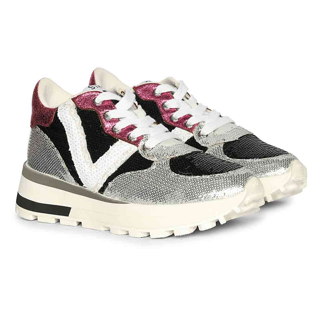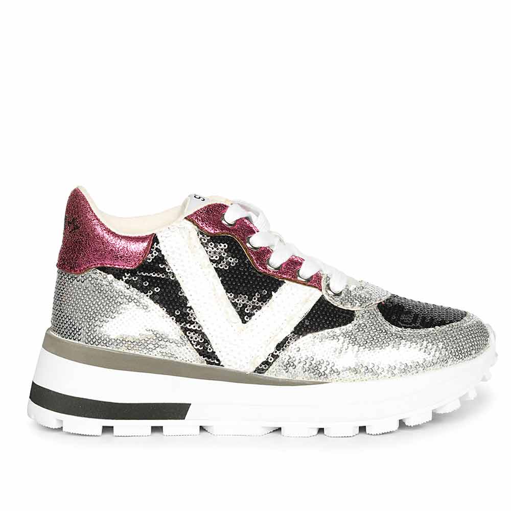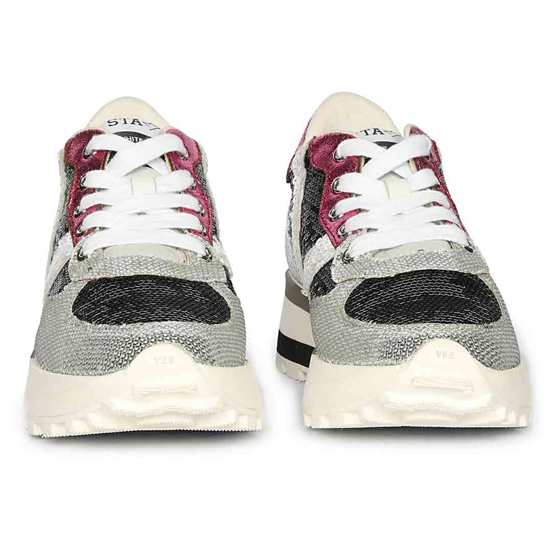 Material: Sequence Silver Fabric, Fuxia Metallic PU, Sequence Silver Fabric