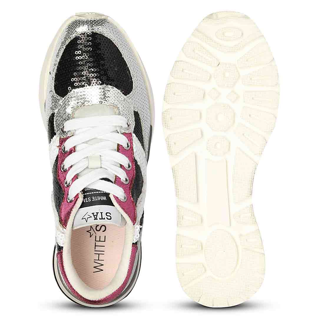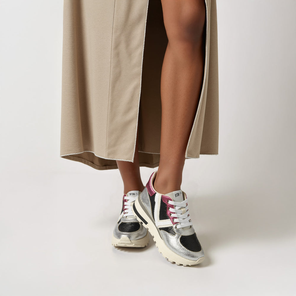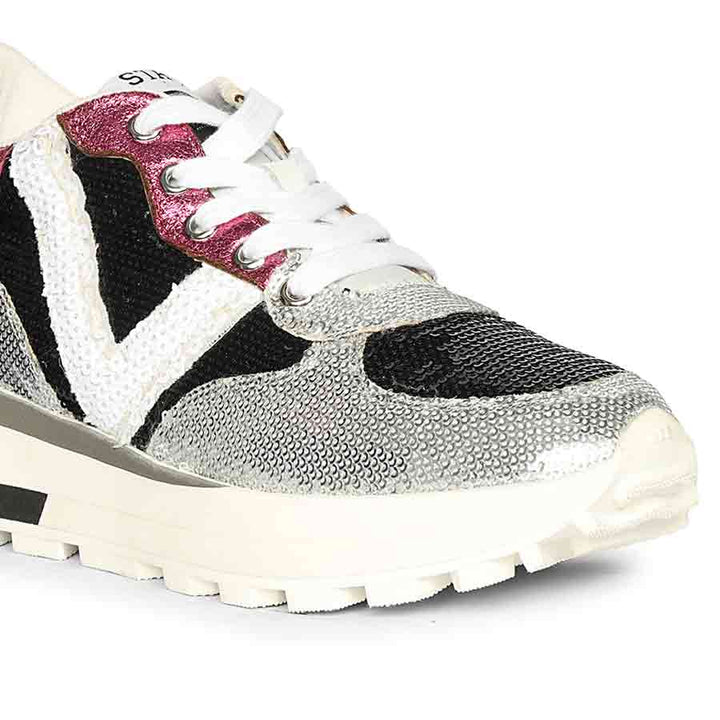Step into the future with NYX Silver Sneaker, where galactic inspiration meets high-fashion craftsmanship. Designed for those who dare to stand out, these sneakers blend premium materials with a cutting-edge silhouette, making every step a statement.