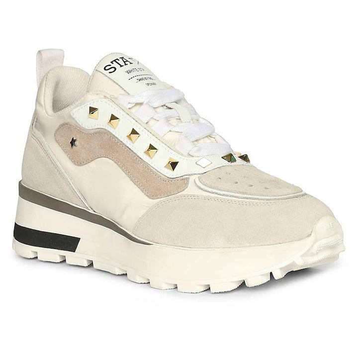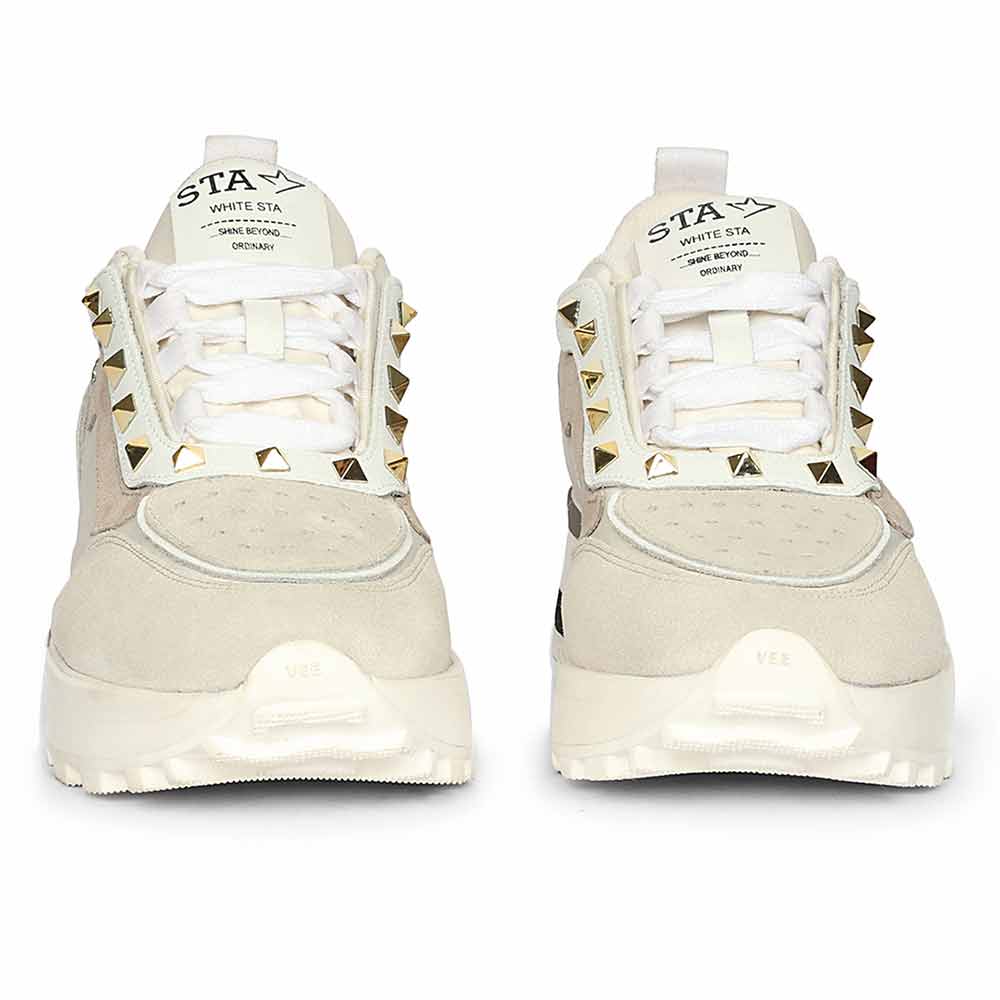 Material: Ivory suede +White pu coated +Taupe Suede +Cream nylon