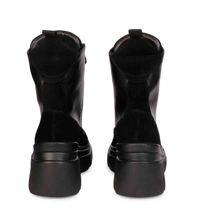 Make a head-turning statement as you wear this pair of black leather handcrafted lace up biker boots from SaintG. Featuring lace-up front with front zippers, comes with a slip-resistant handmade eva biker sole which ensures that you do not slip or fall on any surface. These boots consist of a round toe design, stitched welt a soft leather lining and padded leather insole. the laceup closure and leather pull up tab completes the design.