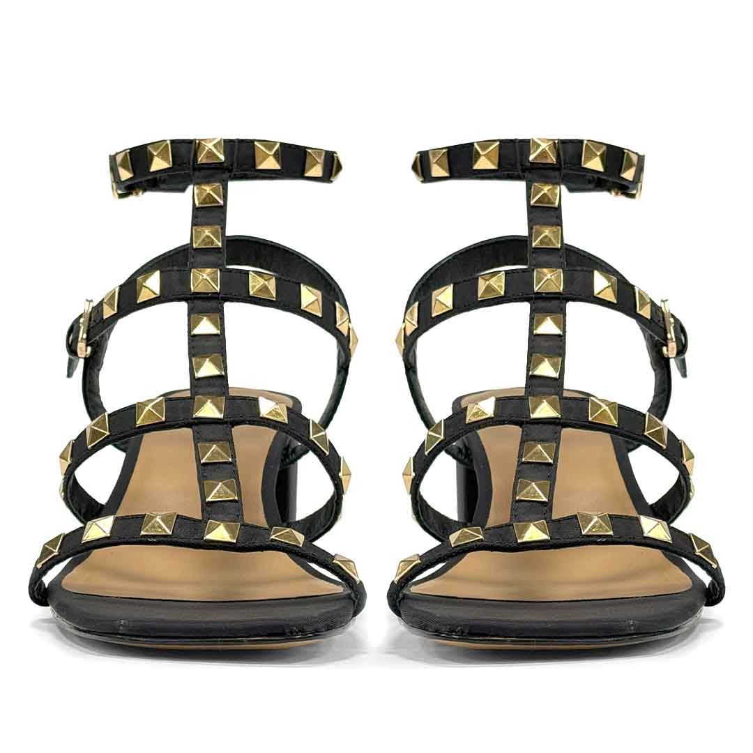 Saint Ella Silver Stone Embellished Black Leather Heels