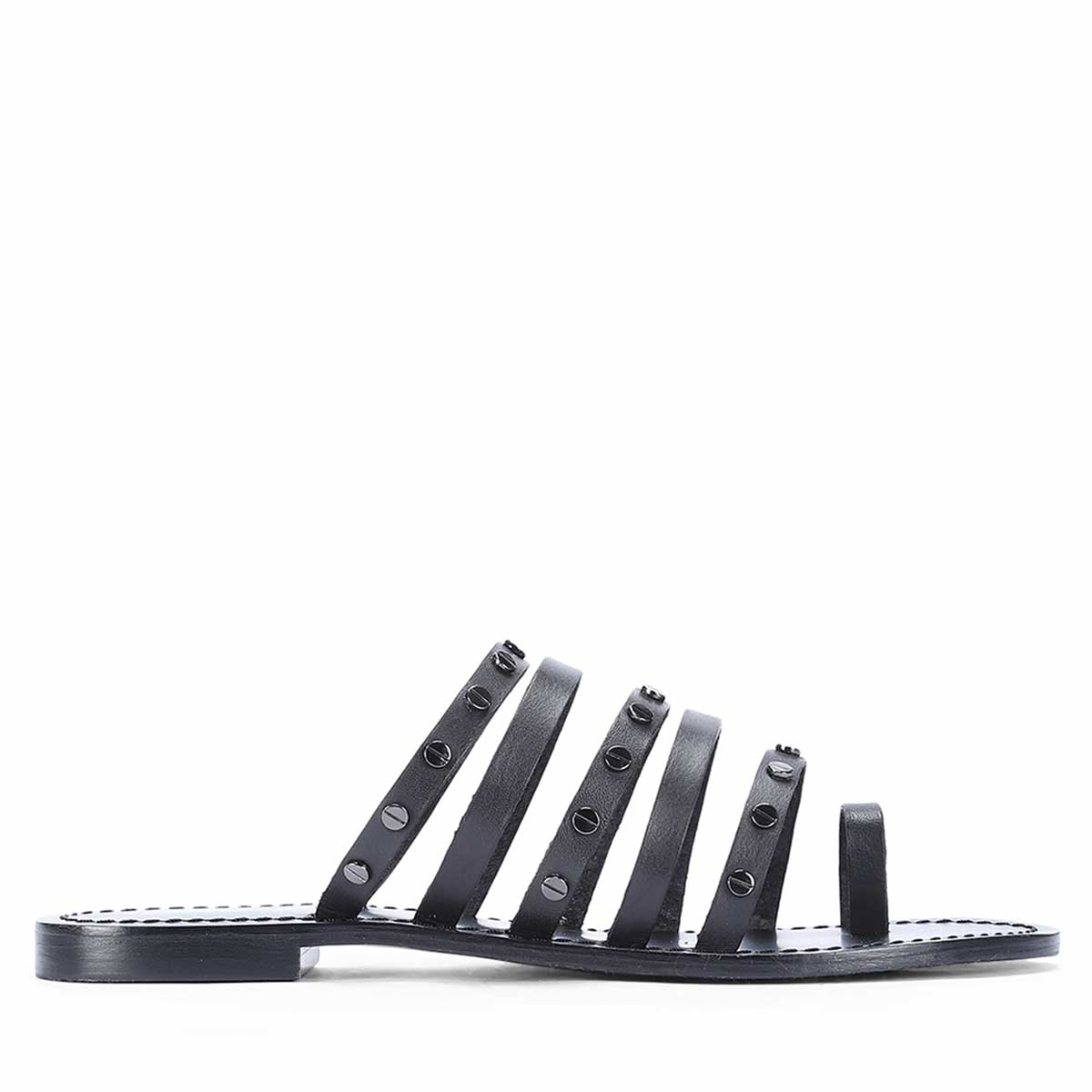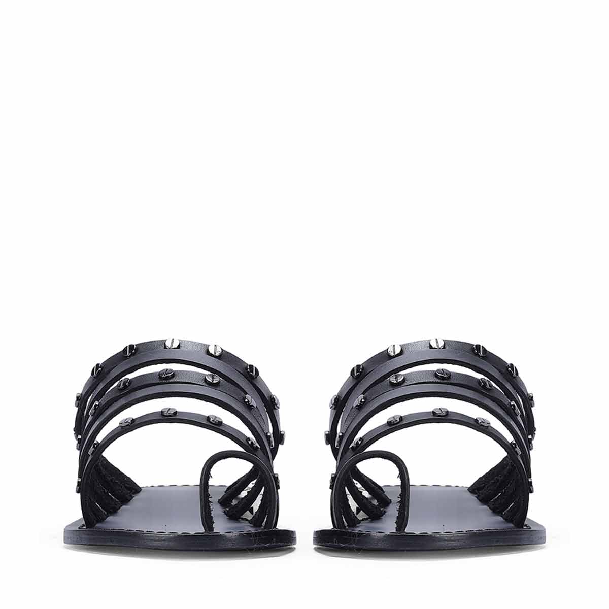 Saint Suri Metal Studded Multi-Strap Leather Flats Sandals