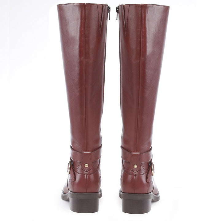 Saint Hermione Buckle Wrap Strap Teak Leather Knee High Boots