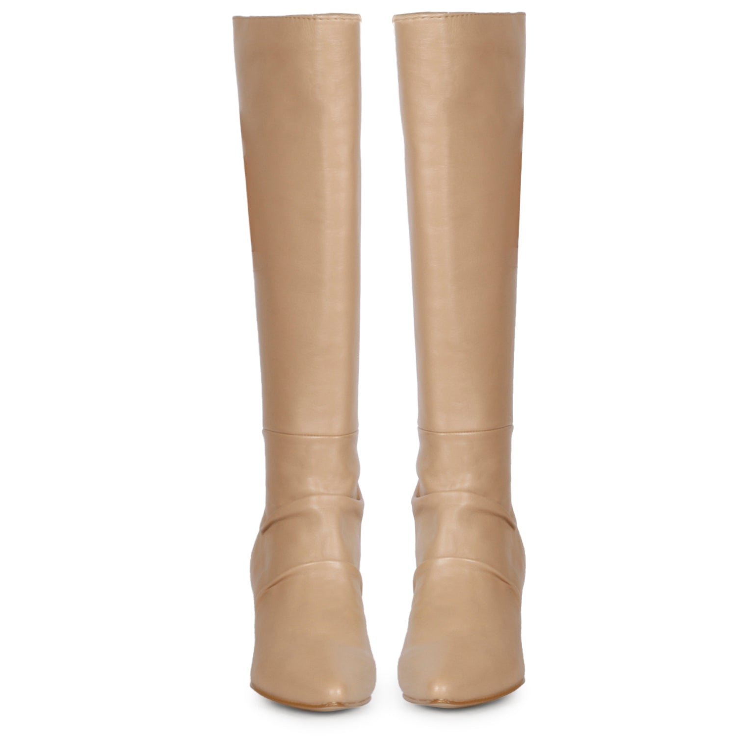 Get ready this winter with these Saint Nadine slouchy long boots. Featuring 2.1 Inch kitten heel, back zip closure to ensure comfortably slip them on and off. Complete with premium leather upper, breathable leather lining and padded leather footbed. The slip on boot sit on a leather covered kitten heel.