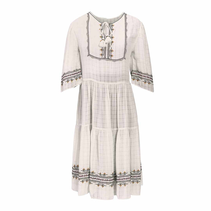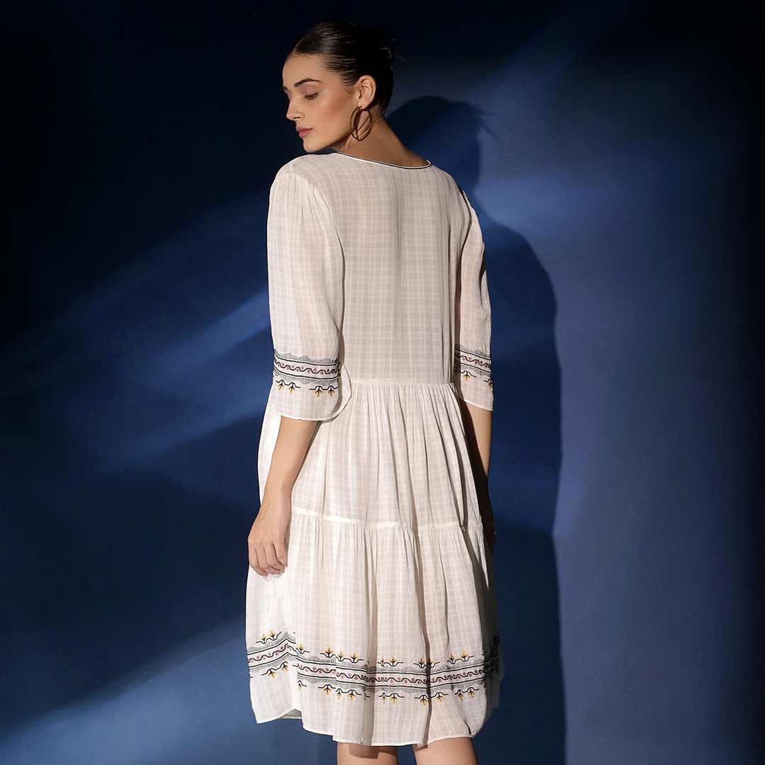 Saint Womens White Viscose Check Dobby Knee-Length Dress