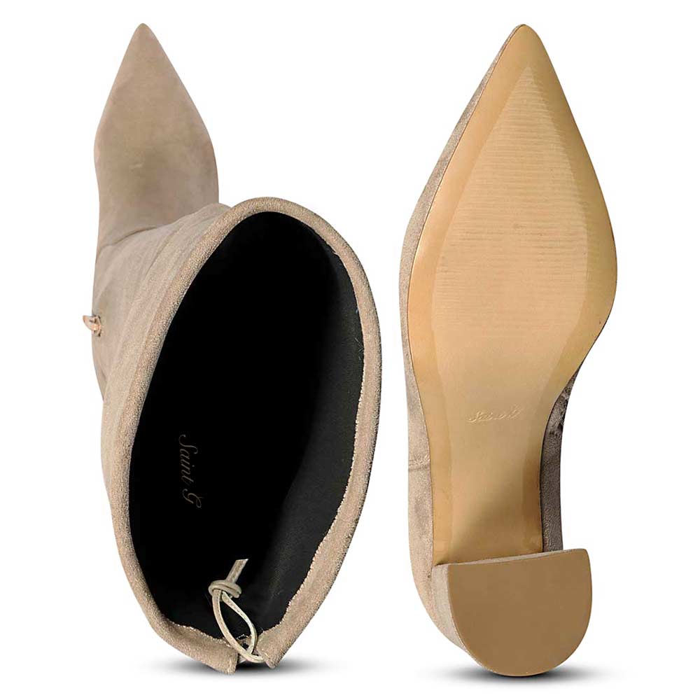 Saint Amara Taupe Stretch Suede Thigh High Boots