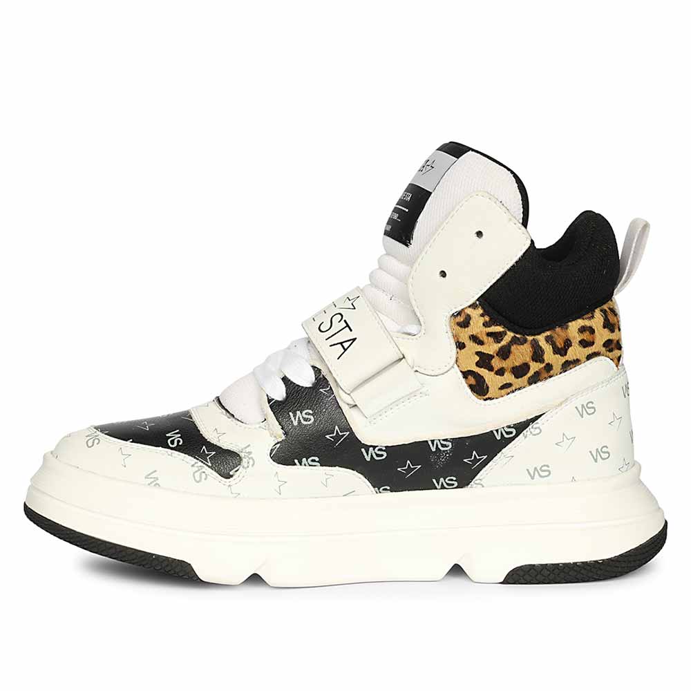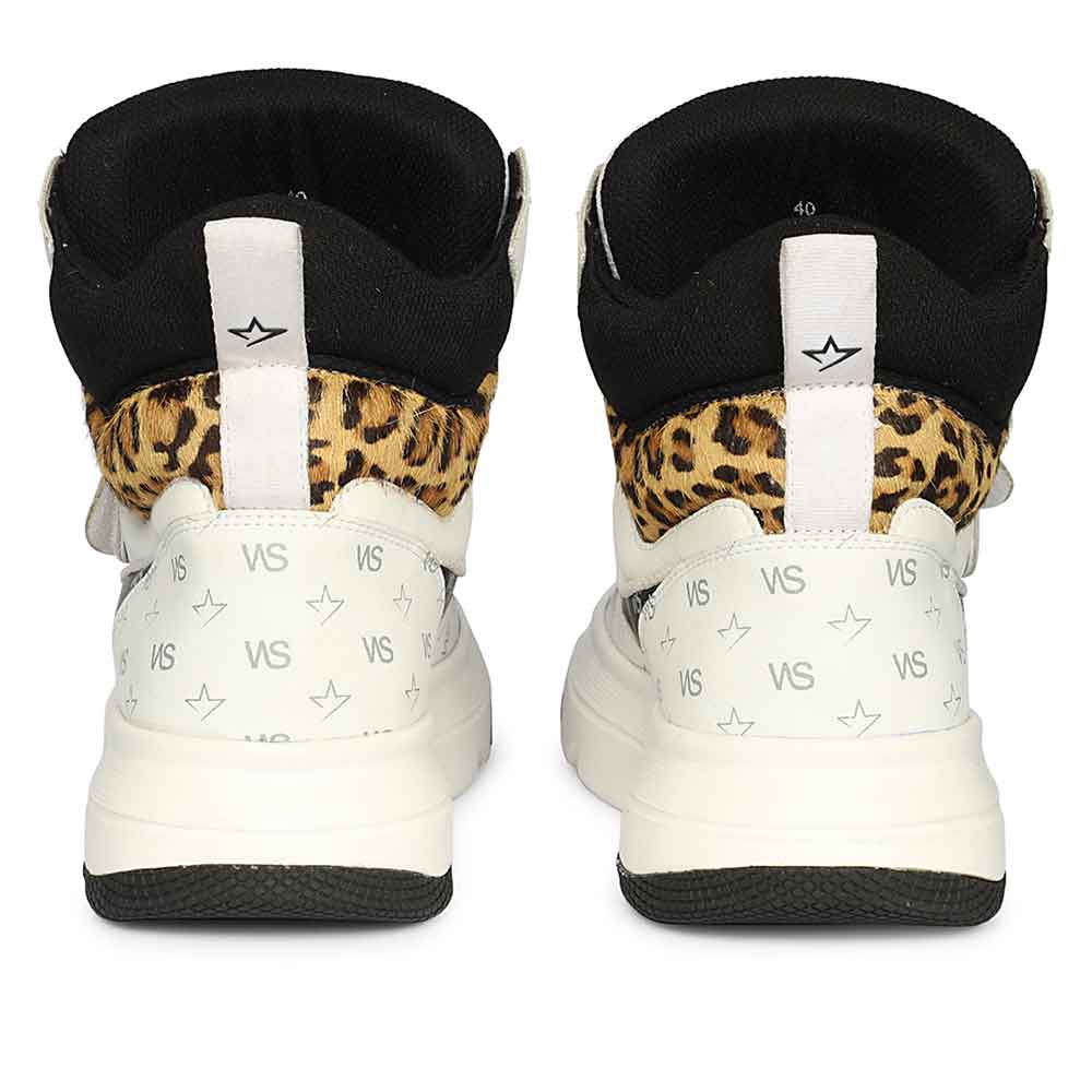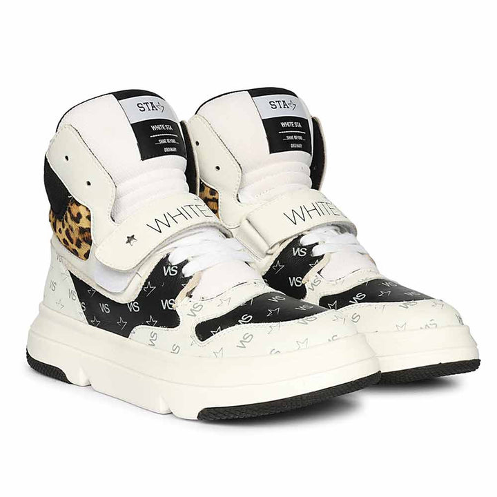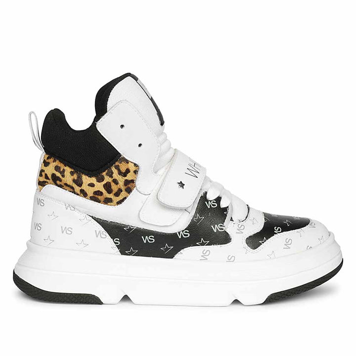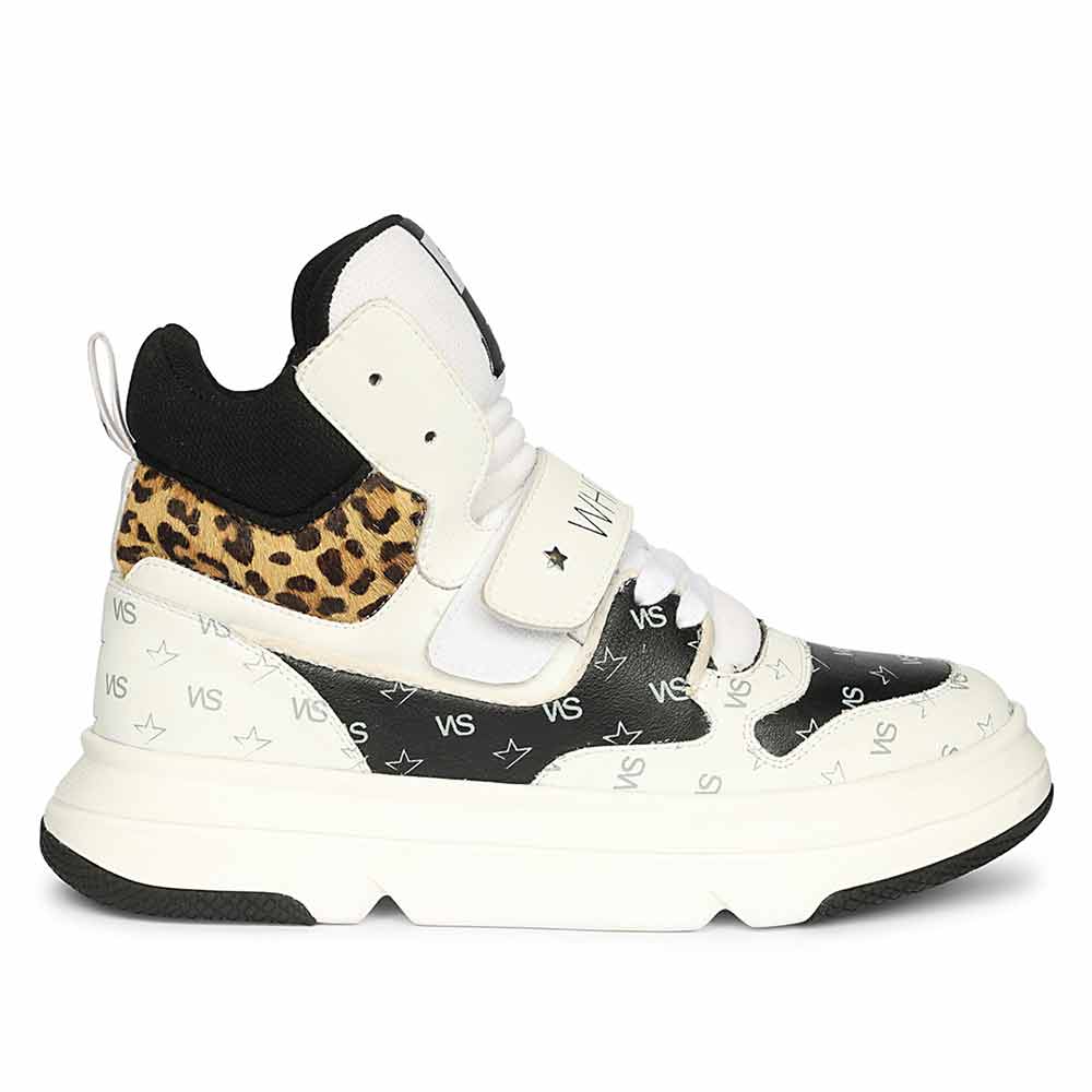Material: White/Black PU + Black mesh + Fur on Leopard Leather.