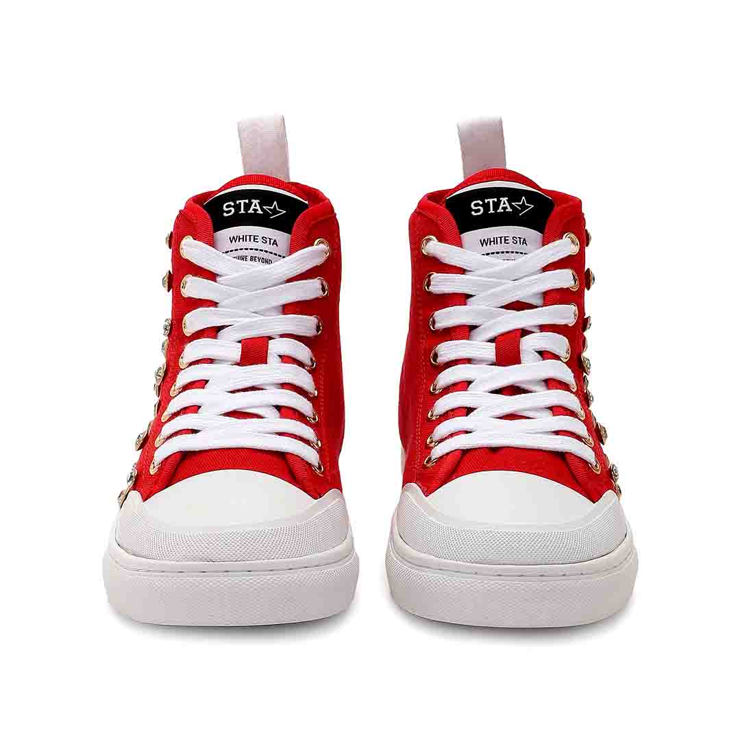 Step into the future with Exo Red Sneaker, where galactic inspiration meets high-fashion craftsmanship. Designed for those who dare to stand out, these sneakers blend premium materials with a cutting-edge silhouette, making every step a statement.