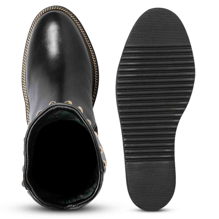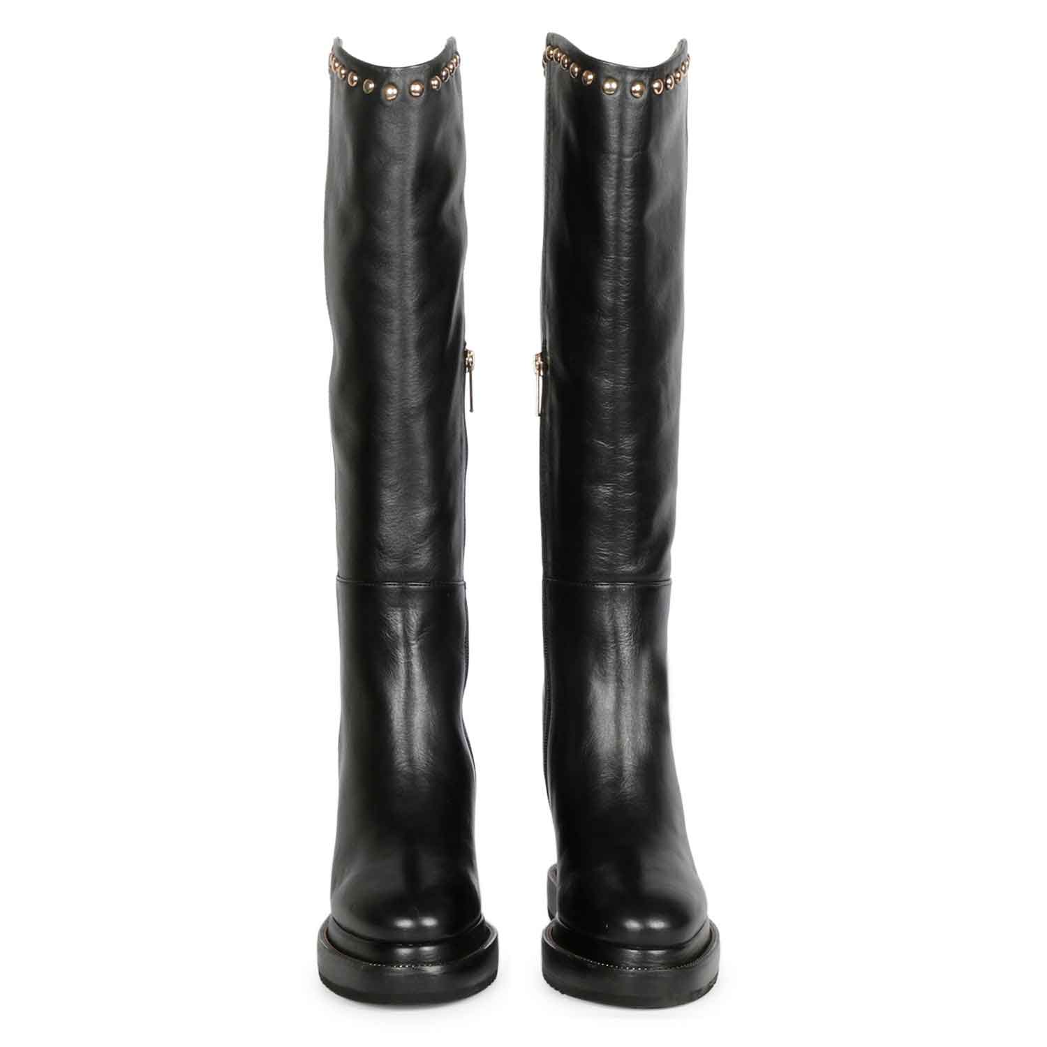 There's nothing more luxe than a black Adelmo inside wedge heel boot! This highly recommended boot is crafted from a premium leather with luxurious leather and fabric lining and inside wedge heel. Easy to wear inside zipper style featuring gold metal studs embellishment at opening and and a pull tab at back. Has a padded leather insole.