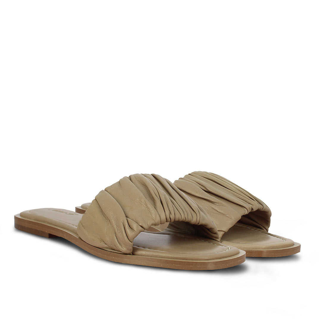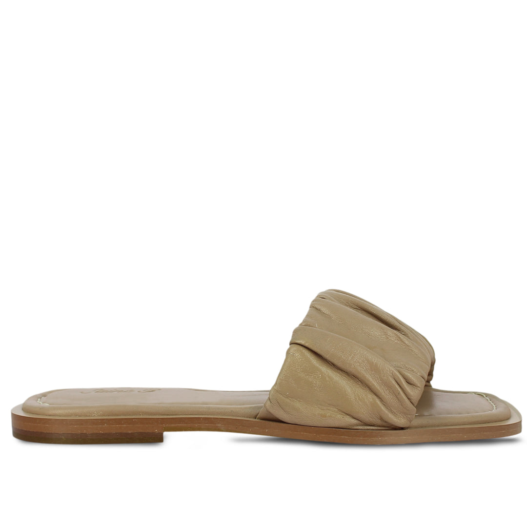Beatrice fashionable Beige Olivia slide from SaintG features a stylish upper and sole that makes it comfortable. Crafted from genuine leather upper, leather lining and tunit sole with a premium finishing and designed to fit. This trendy slide is surely a good addition to your footwear collection.