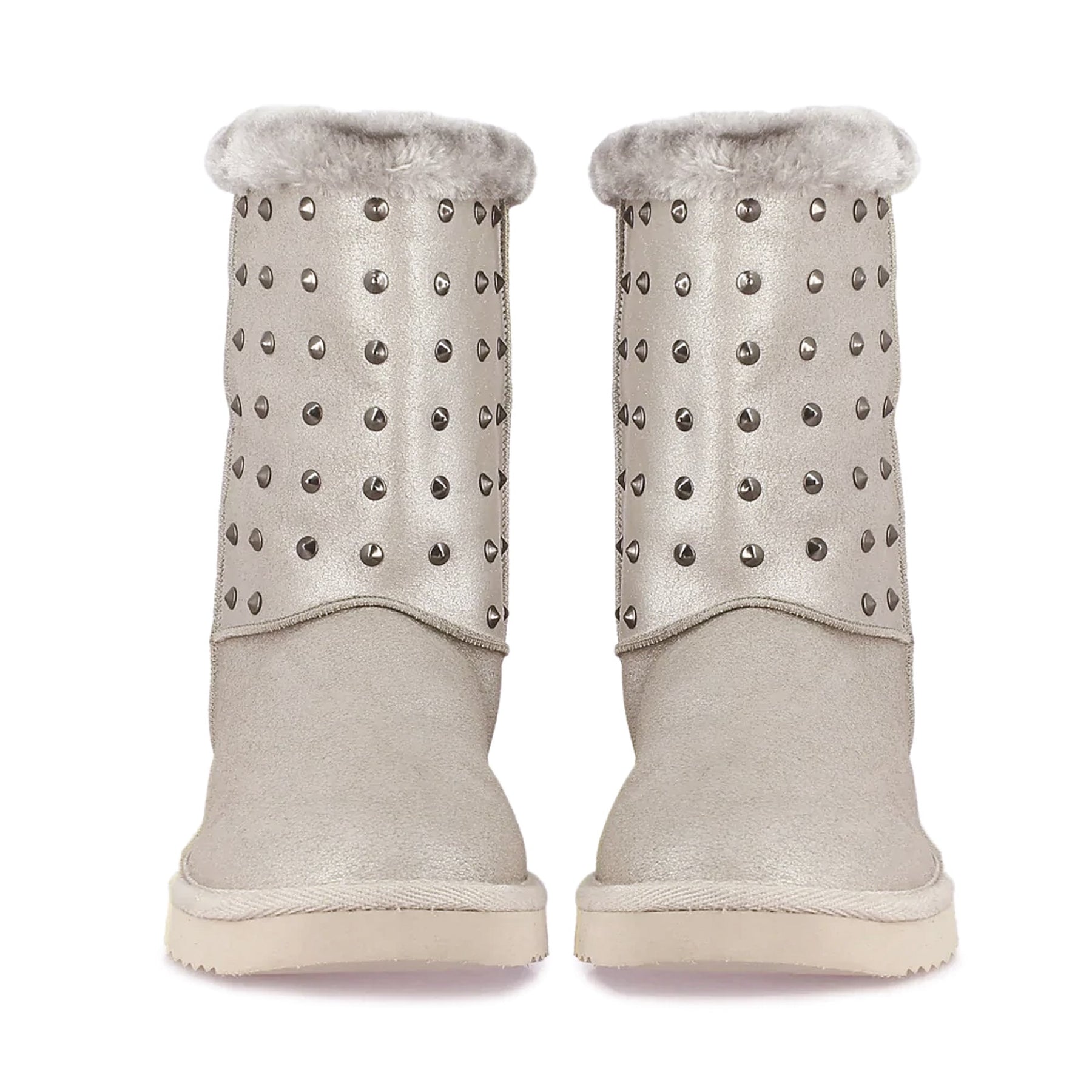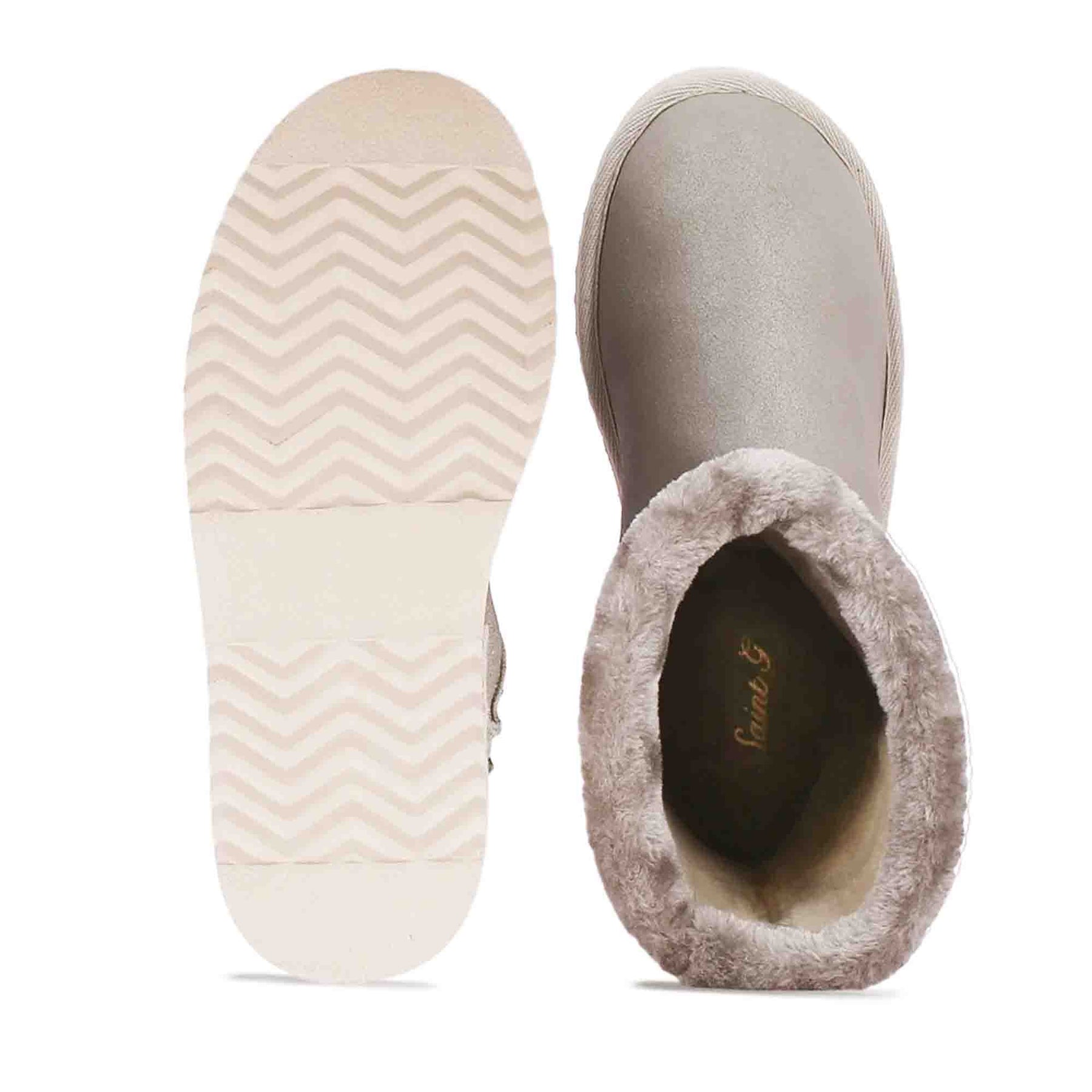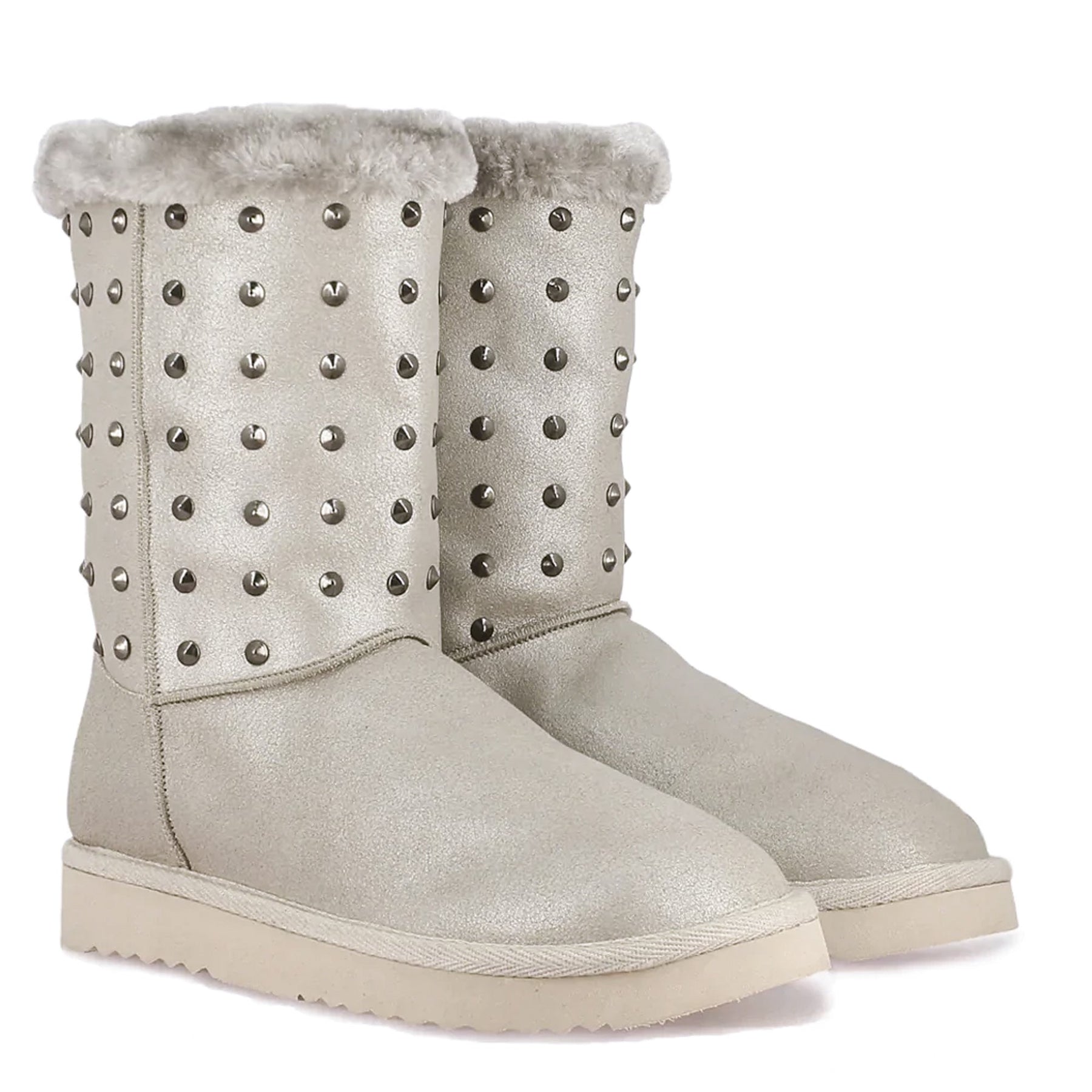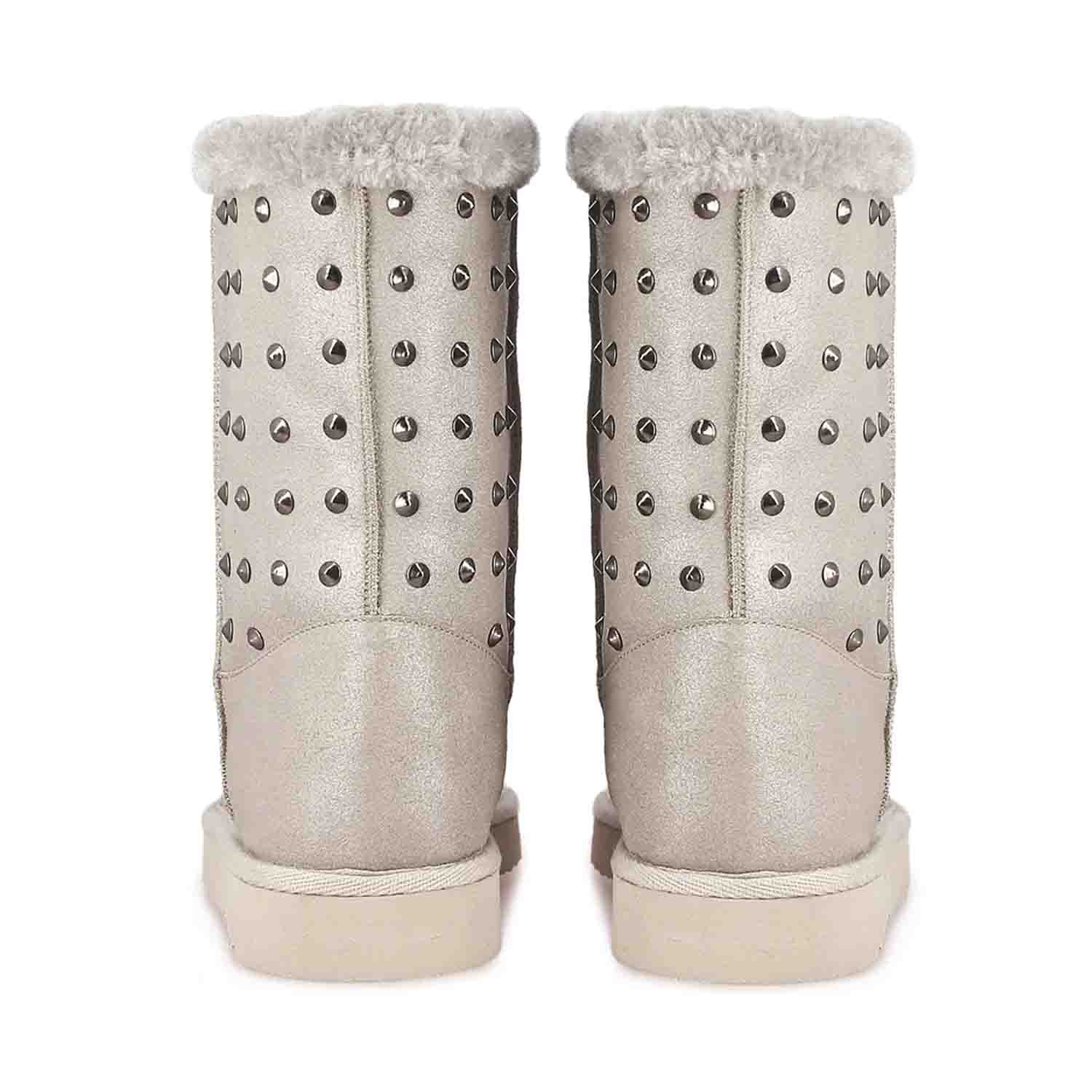 The dazzling, metal studded silver glitter upper and fur lined boots will instantly give your winter look a fun party vibe. These snow boots are designed with fur lining and fur insole to keep your feet warm while you have fun. Enjoy your step with super comfortable & flexible rubber sole.
