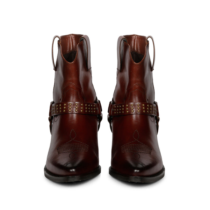 Saint Enrica Metal Studded Teak Leather Ankle Boots