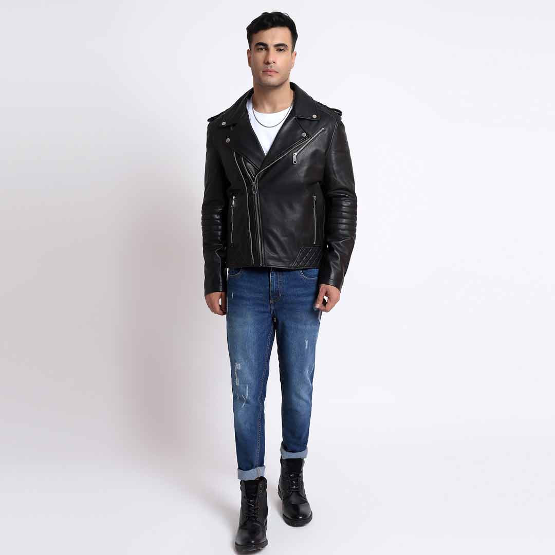 With its biker style, Fabio's Biker Leather Jacket will set you apart from the rest. It's made of high-quality, full-grain leather that is durable and long-lasting. It is stitched with soft and comfortable cotton and taffeta lining that will keep you warm and cozy. With full-length sleeves and open-hem zipped cuffs, this jacket offers a casual look. The notch lapel designed collar looks very attractive on leather as always.