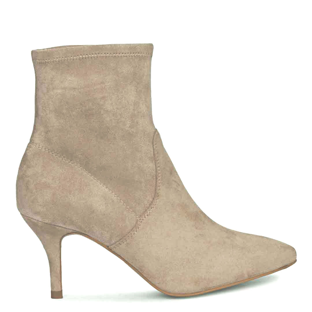 The Jemima Taupe stretch suede Stilettos heel boot is a luxury that cleverly combines a stylish youthful outlook. Complete your edgy style with these stretch suede ankle boots from SaintG. Features a premium quality stretch suede upper, soft leather lining and a tunit sole. The stiletto heel add a subtle shine to any outfit. With an approximate heel height of 3-inch, it comes with a pointed shaped tip which further accentuate its outlook.