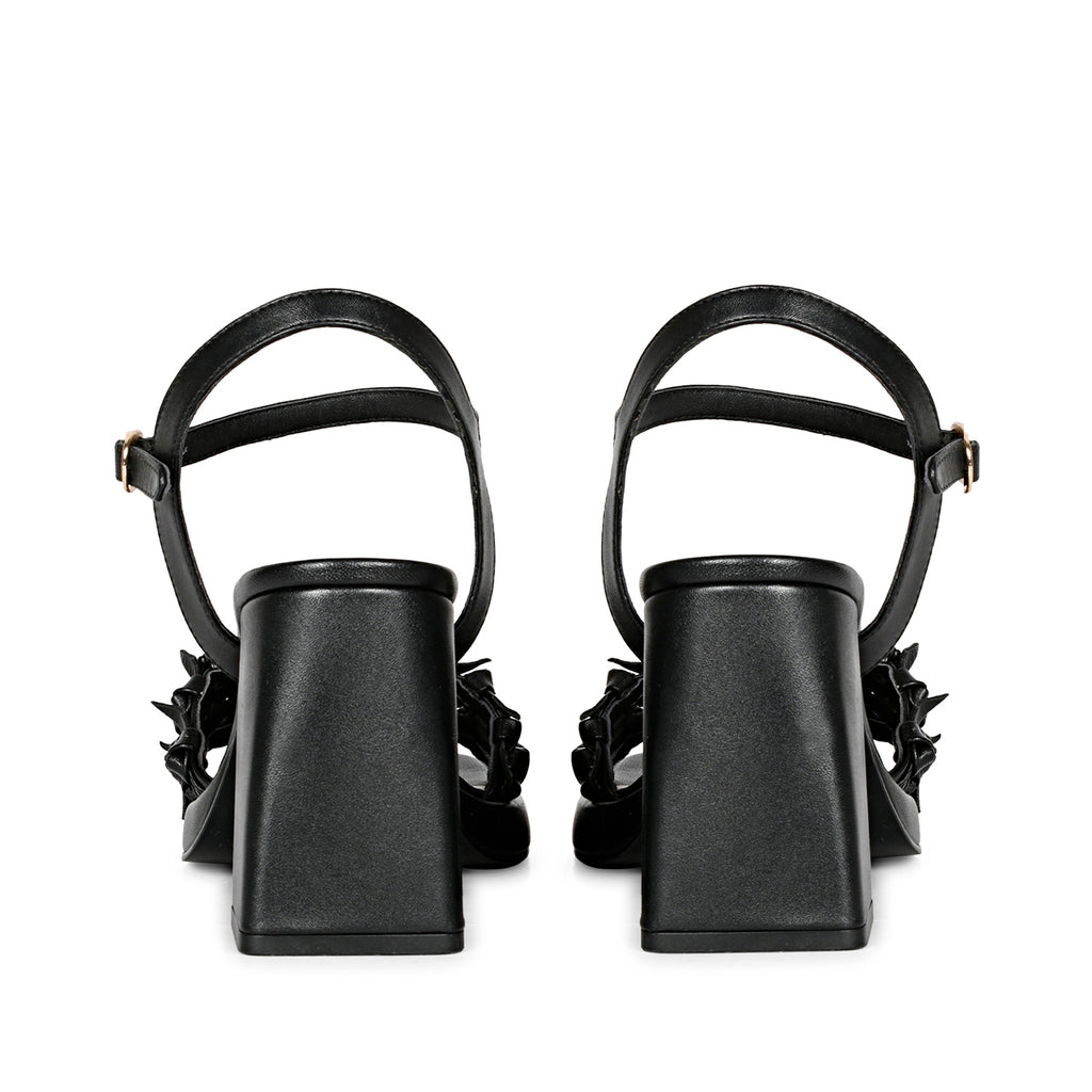 This new season Joy heel is crafted from a black premium leather in a woven design with a leather covered block heel. Its comes with an adjustable buckle fastening for a perfect fit. leather lining and padded leather insole for natural comfort and breathability. An open and square toe, tunit sole make these sandals really stylish and comfortable.