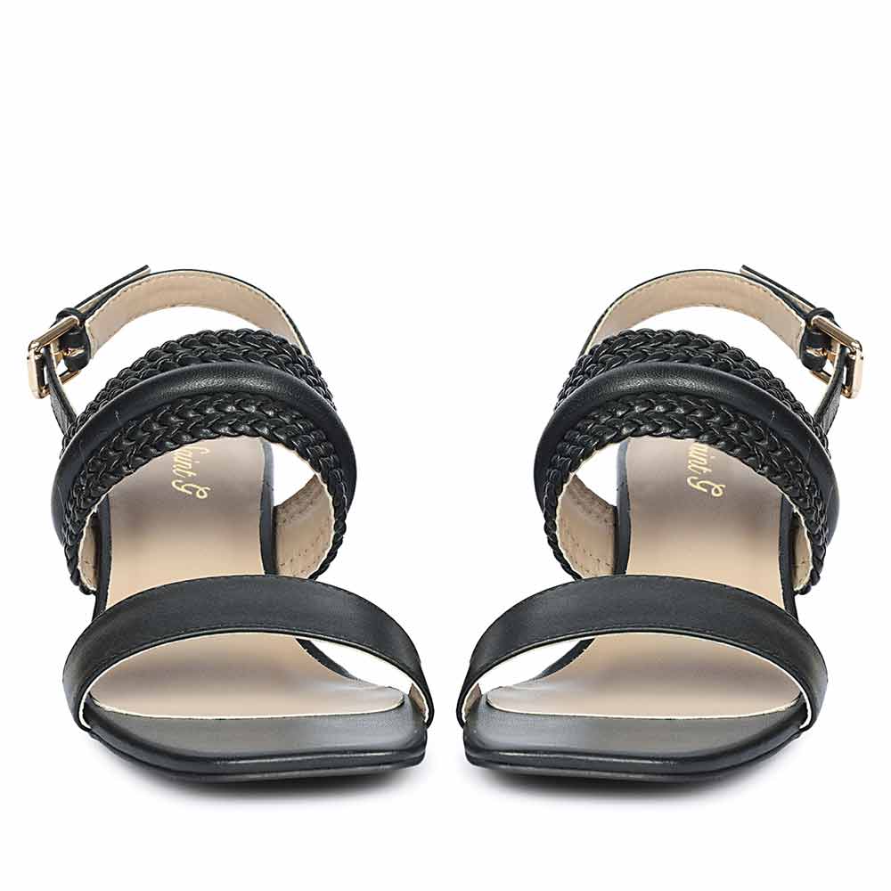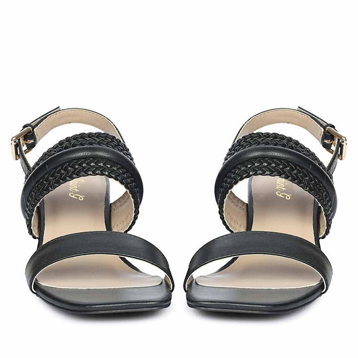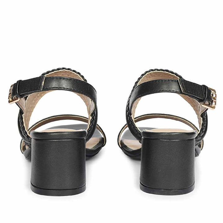 Step into paradise with our luxury black leather luxe heels! The adorned design and pin buckle strap add playful details. Perfect addition to any summer outfit!