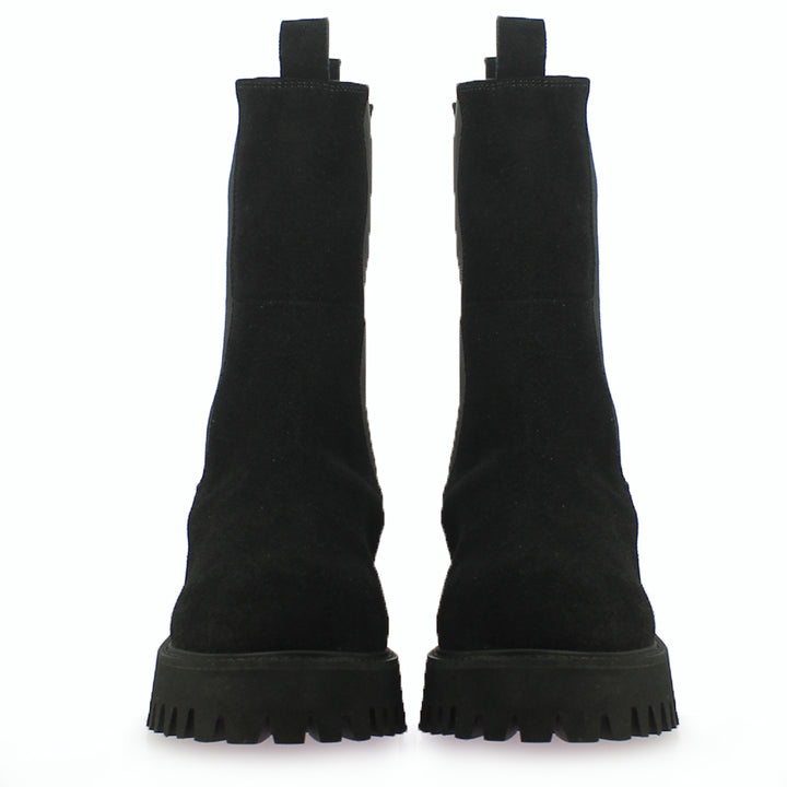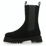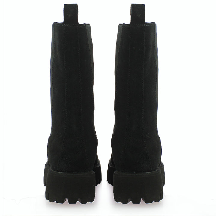 Set the trend this season in these Paolina black high anke boots crafted from genuine leather by SaintG, Fitted with elasticated side gores to easily slip on and off. The premium leather upper assures comfort, while the handmade eva sole guarantees traction irrespective of the surface. The pull up tabs completes the design.