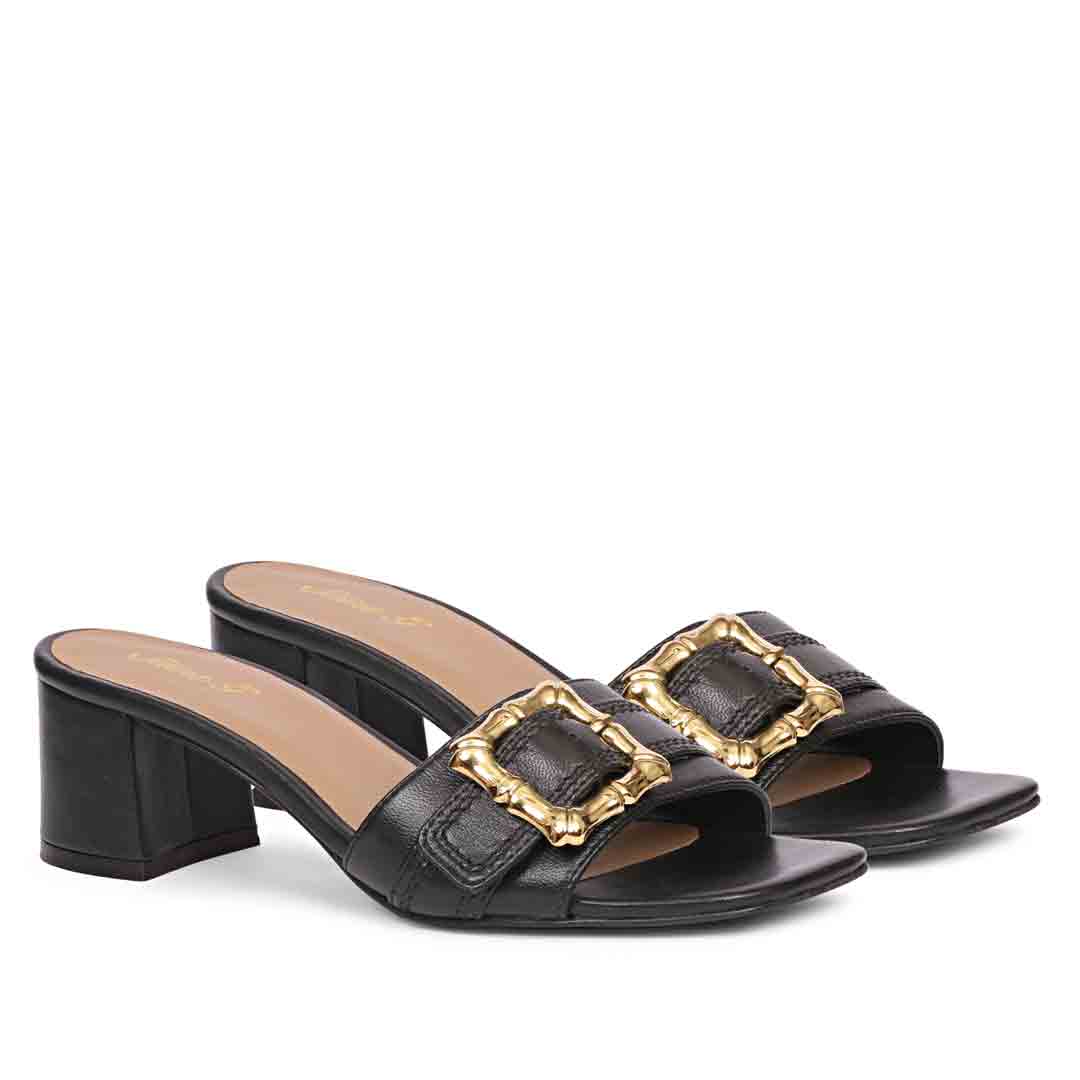 Upgrade your shoe game with Saint Flavia Gold Square Buckle Leather Block Heels. These heels feature a stylish gold square pin buckle and are made from genuine leather, providing both fashion and comfort in one shoe. Look chic and comfortable all day long with our quality craftsmanship.